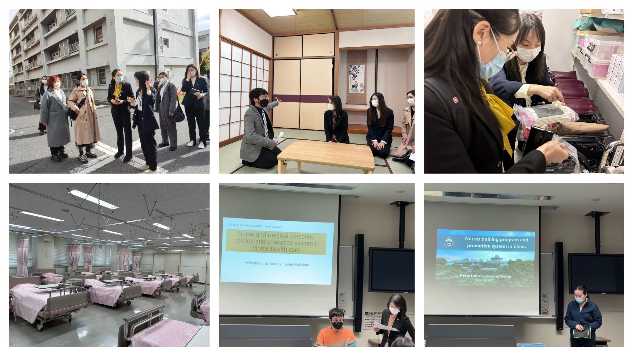 访学期间,研学团队与广岛大学研究科就居家护理、灾难护理、护理医疗人员的养成及教育制度等方面开展了学术交流与合作探讨。广岛大学中谷久惠教授、上田美香老师、士芹泽洋帆老师等为研学团队详细讲解了日本居家护理的变迁与发展、医院出院支援、预防活动与社区综合支援中心、日本访问护理制度和日本居家护理中的理学疗法。