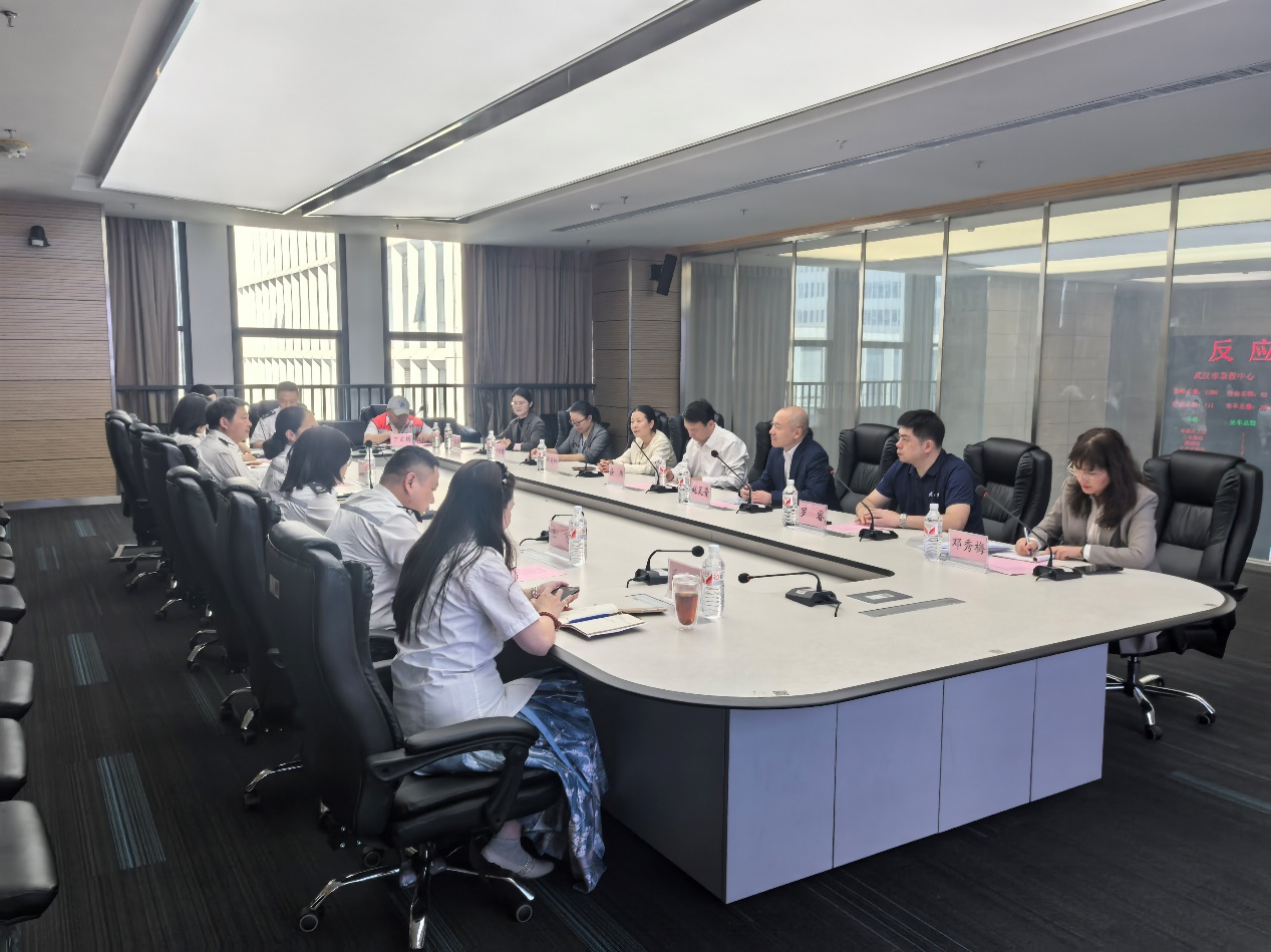 领导班子一行8人赴武汉市急救中心开展学习交流活动。武汉市急救中心党委书记、主任赵俊、副主任张文胜及相关业务部门负责人出席活动。