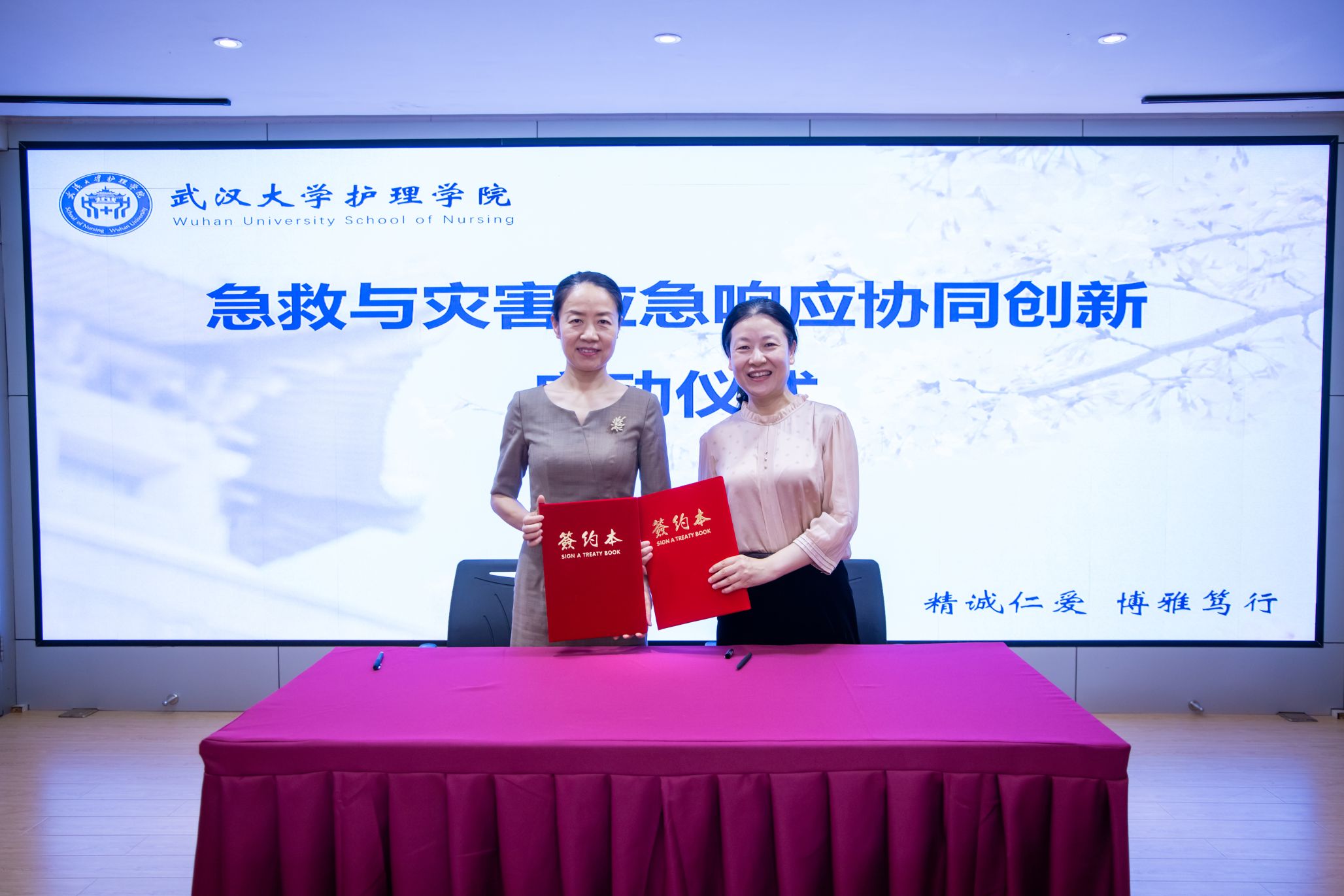 院长周芙玲与武汉市急救中心党委书记、主任赵俊代表双方正式签订急救与灾害响应协同创新合作协议。此次签约标志着双方将在人才培养、科学研究、技术创新、应急救援等领域开展深度合作,共同探索急救与灾害应急响应的新机制、新模式、新路径,为提升我国急救与灾害应急响应能力奠定坚实基础。