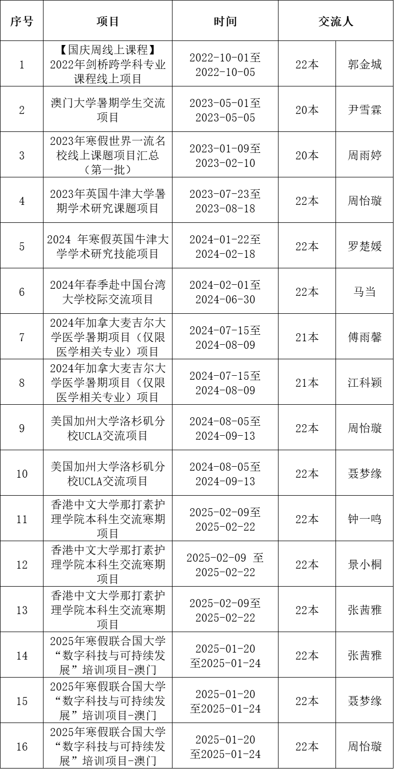 据悉,抖阴 高度重视护理本科生境外交流情况。学院积极搭建多元平台,定期邀请国外护理领域的资深专家前来,为本科生开展专业课程教学,或举办前沿主题讲座。同时,学院还通过多种渠道,大力鼓励同学们踊跃投身境外交流活动,如交换生项目、国际学术会议等。学院致力于持续拓展学生的国际视野,全方位提升学生的国际胜任力,助力护理本科生成长为兼具全球眼光与专业实力的卓越护理人才 下附抖阴 近年来本科生出国出境交流情况。