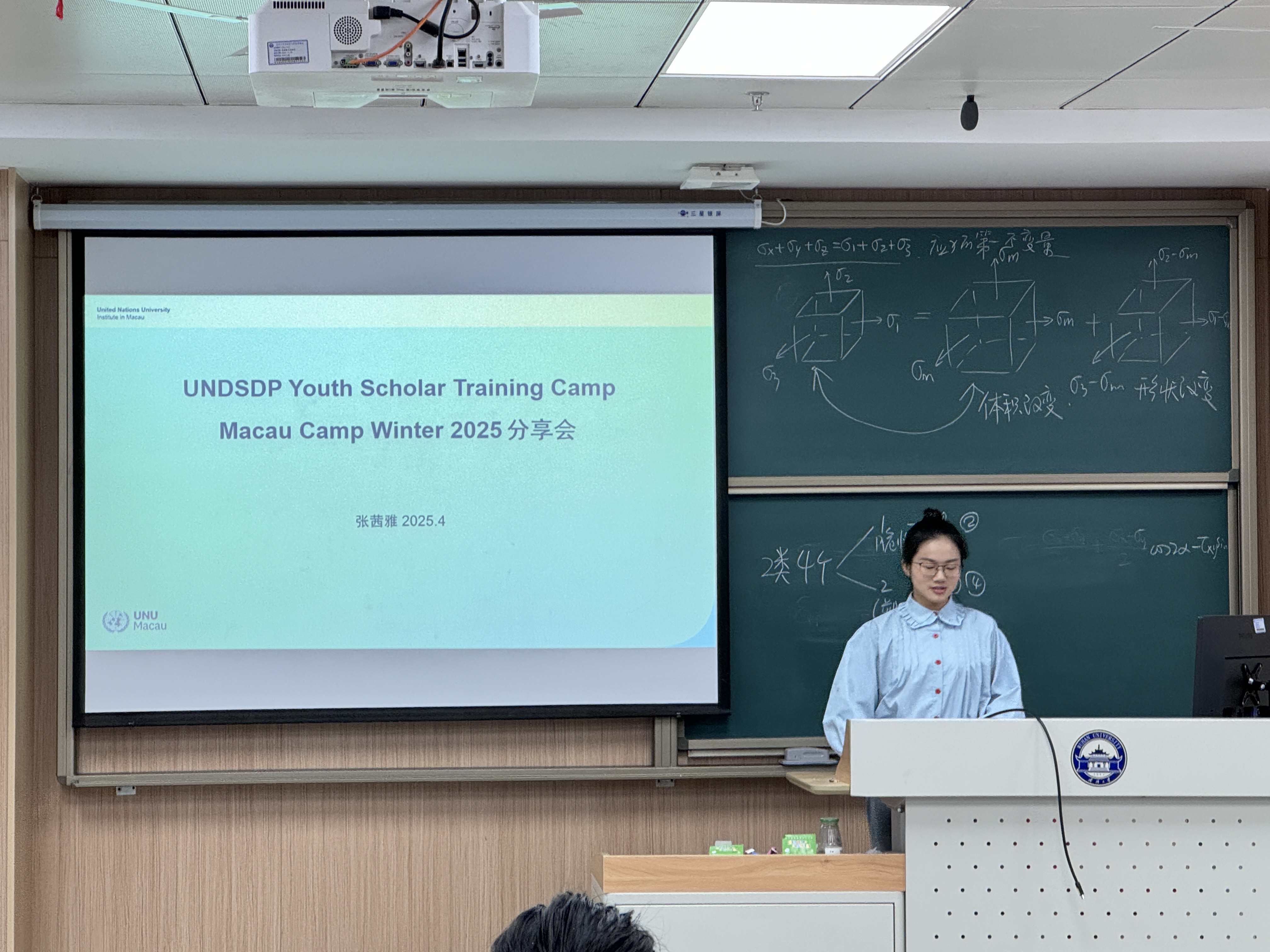 张茜雅、聂梦缘同学通过图文和视频展示,带大家走进联合国可持续发展目标青年学者培训营澳门营地。营地丰富的课程活动、小组为项目目标齐心协力的场景,还有老师与同学们亲密合影的温馨画面,都让她难以忘怀。