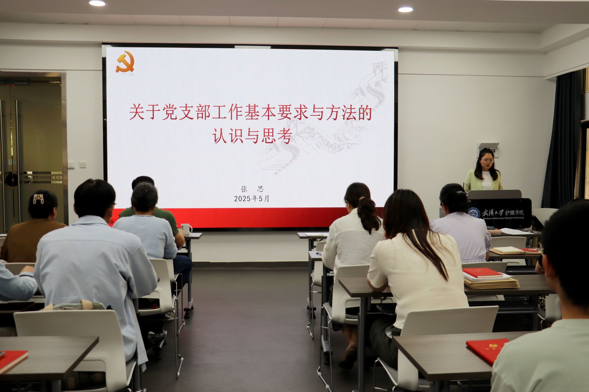 专职组织员张思结合中央八项规定精神,以“关于党支部工作基本要求与方法的认识与思考”为主题作培训报告,分享了关于党支部工作的建设经验。她详细介绍了党支部的基本任务、支部委员的主要职责、“三会一课”制度、发展党员及日常工作的基本内容和方法,鼓励各党支部结合专业特色,推动支部标准化规范化建设,提升支部工作实效。