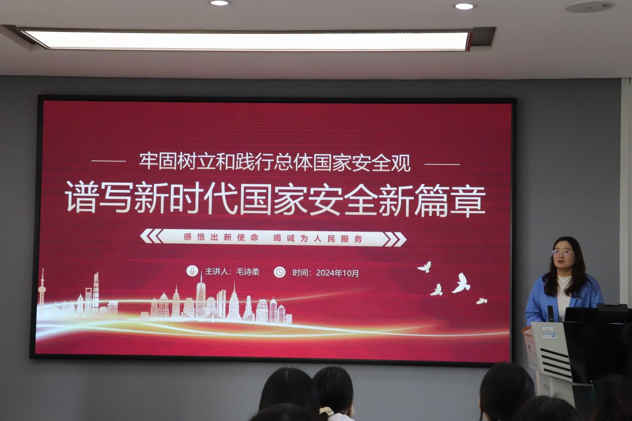 第三课,团委书记毛诗柔围绕网络安全议题进行了分享。她强调了信息技术发展背景下保护国家安全的新挑战,并介绍了加强网络空间安全防护的重要性。同时,她还介绍了此次培训计划的详细内容,包括线上课程、线下培训、理论自学、测试、社会实践和研讨活动等多种方式,旨在帮助大家提高学习效果,增强应对各种风险挑战的能力。
