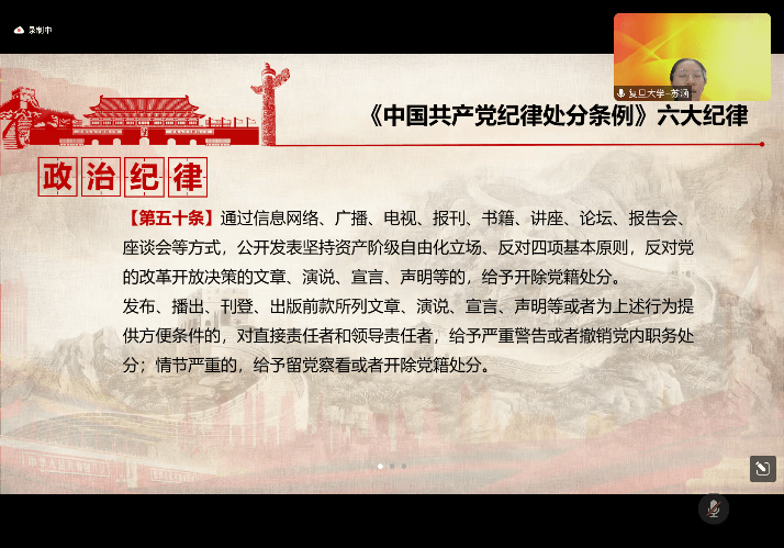2023级研究生党支部书记温湘祥就提升党建工作水平、加强党员教育管理等方面进行了经验分享。随后,支部纪检委员苏涵带领大家围绕《中国共产党纪律处分条例》进行了学习,强调党员必须严格遵守党规党纪。