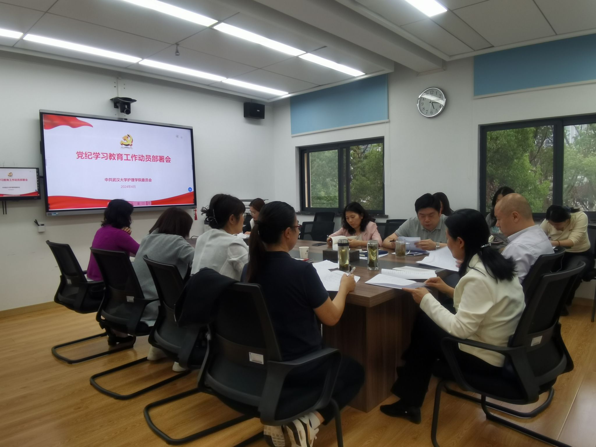 赵昊鲁表示,开展党纪学习教育,要坚持以习近平新时代中国特色社会主义思想为指导,进一步强化纪律意识、加强自我约束、提高免疫能力,在加快中国特色世界一流大学建设的新征程上勇担使命、开拓新局,答好“推进中国式现代化,武大何为”的时代命题。领导班子成员和各党支部书记要把握学习要求,突出重点,抓住关键,以《中国共产党纪律处分条例》学习为重心,结合学院实际,压紧压实责任、统筹协调推进、加强宣传引导,扎实有序推进党纪学习教育,为学院各项工作迈上新台阶提供坚强纪律保障。