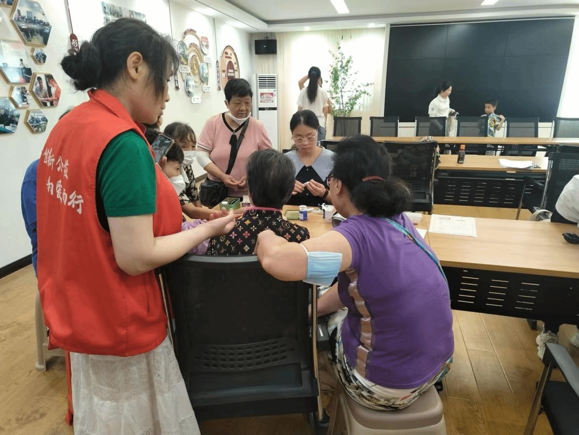 健康教育活动讲座结束后,队员们帮助老年人们测量血压、血糖,应用所学护理专业知识老人们答疑解惑,促进老年人更加关注和了解自己的健康状况。