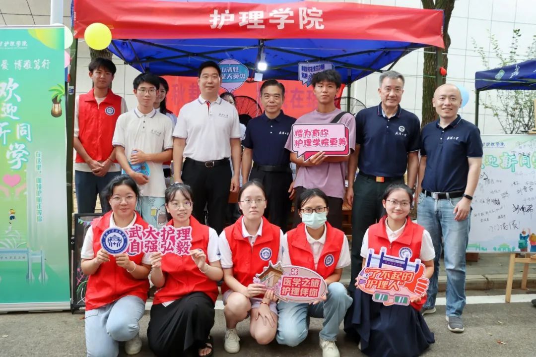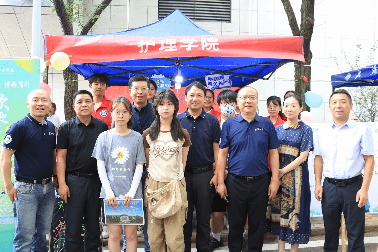 副校长周叶中、党委副书记沈壮海、副校长唐其柱等校领导及学校相关职能部门的负责人一行来到迎新现场,对学院师生表示慰问,同时与现场新生进行亲切的交流并合影留念。