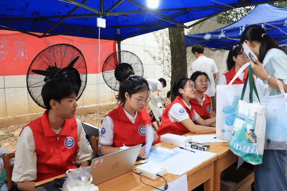 的老师和志愿者们却早早地来到了工学部迎新点,热情洋溢地迎接新生的到来。为了迎接学弟学妹们,志愿者们提前结束了假期,为新生准备好了迎新礼物。