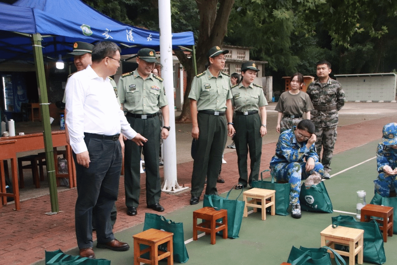紧张的训练过程中,张平文校长来到军训现场,观看大家训练情况,并慰问了身体不适暂未参训的学生情况饱含对学生的殷殷关怀之情。