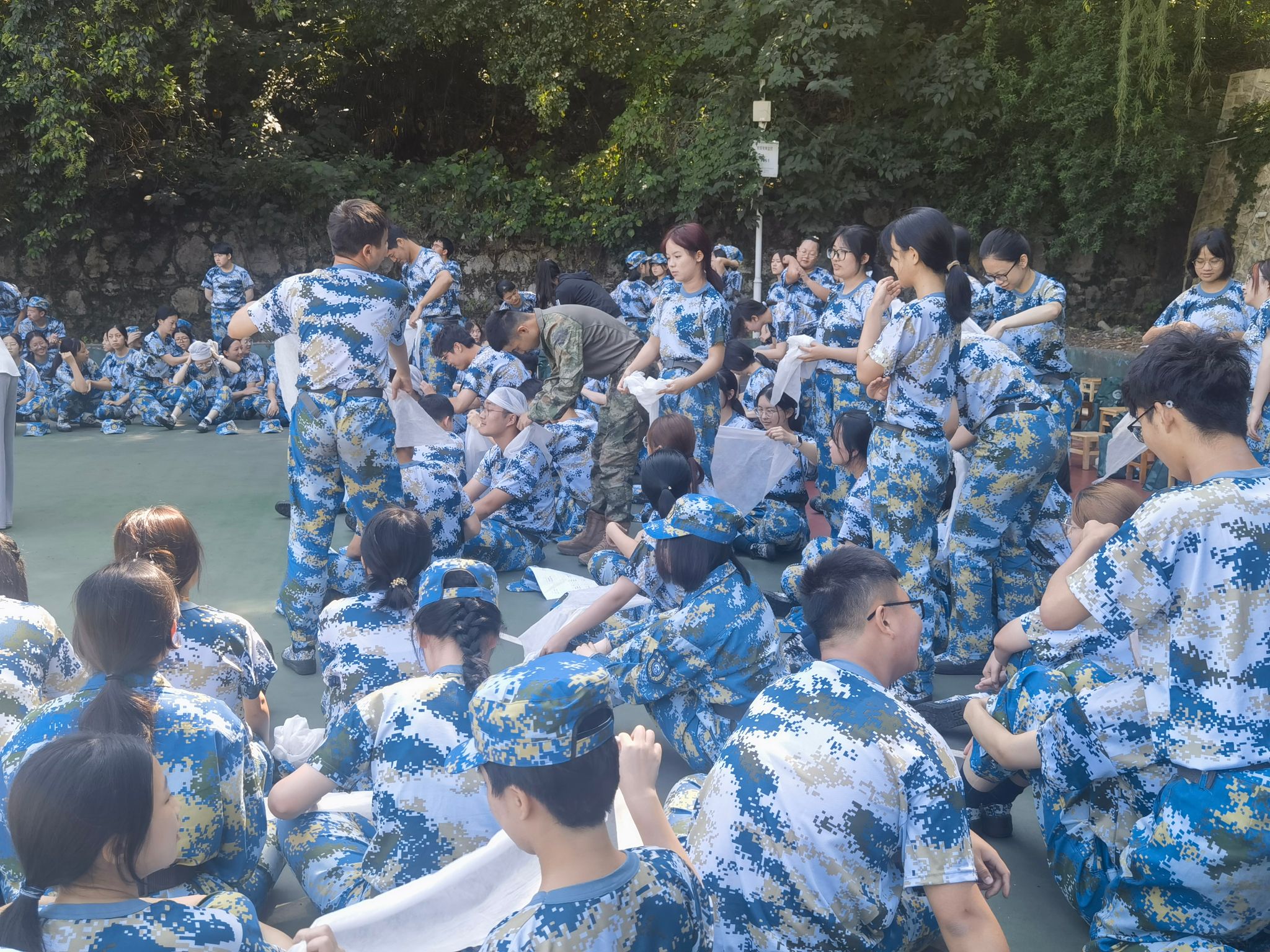 救护之翼协会成员来教授同学们包扎、心肺复苏等急救知识。看了老师规范的示范后,同学们纷纷拿起纱布在周围同学、教官身上练起了手,在一片欢声笑语中学习了急救知识,掌握了基本的急救技能,提高了自己的应急能力。