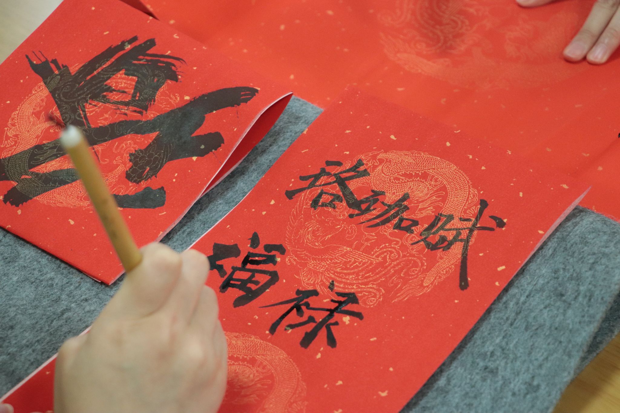 创意对联:活动进行到高潮时,大家齐聚一堂,共同挥毫泼墨,创作了富有创意和祝福的对联,为即将到来的新春佳节添彩添福。