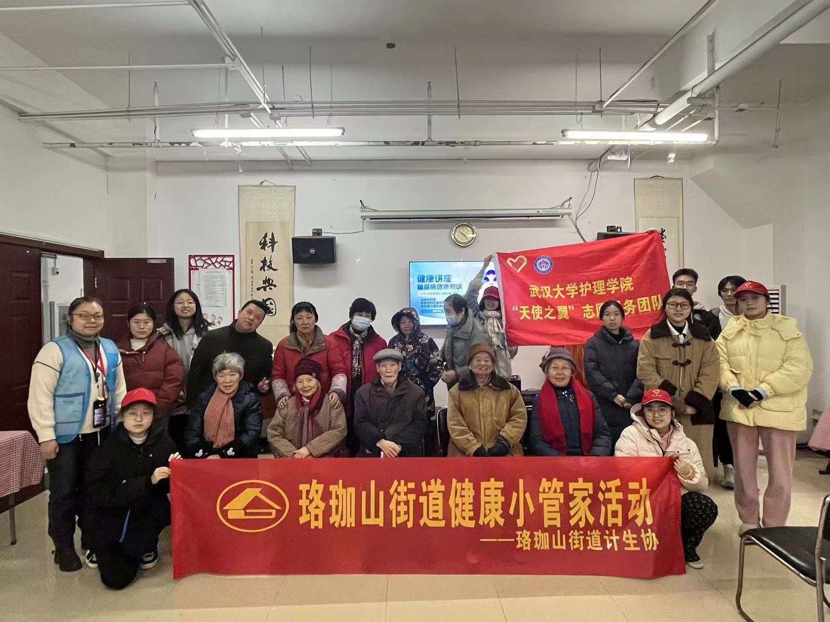 寒期实践|“志愿服务”专题·抖阴 天使之翼实践队赴服珞珈山街道开展老年人防跌倒活动