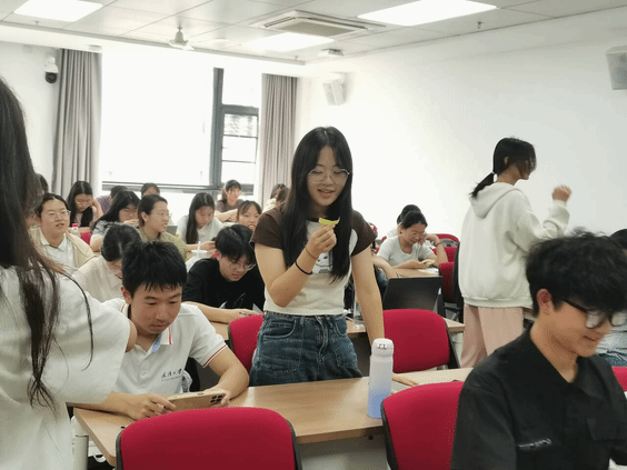 在了解完有关压力的心理学知识之后,中文班心理委员陆紫晴和班长刘阳洋一起收集了大家的小纸条,放入暗箱之中,请同学们随机抽读小纸条内容。同学们都积极地参与到暗箱纸条小游戏中,读出他人的快乐,同时也让自己收获了积极的情绪。