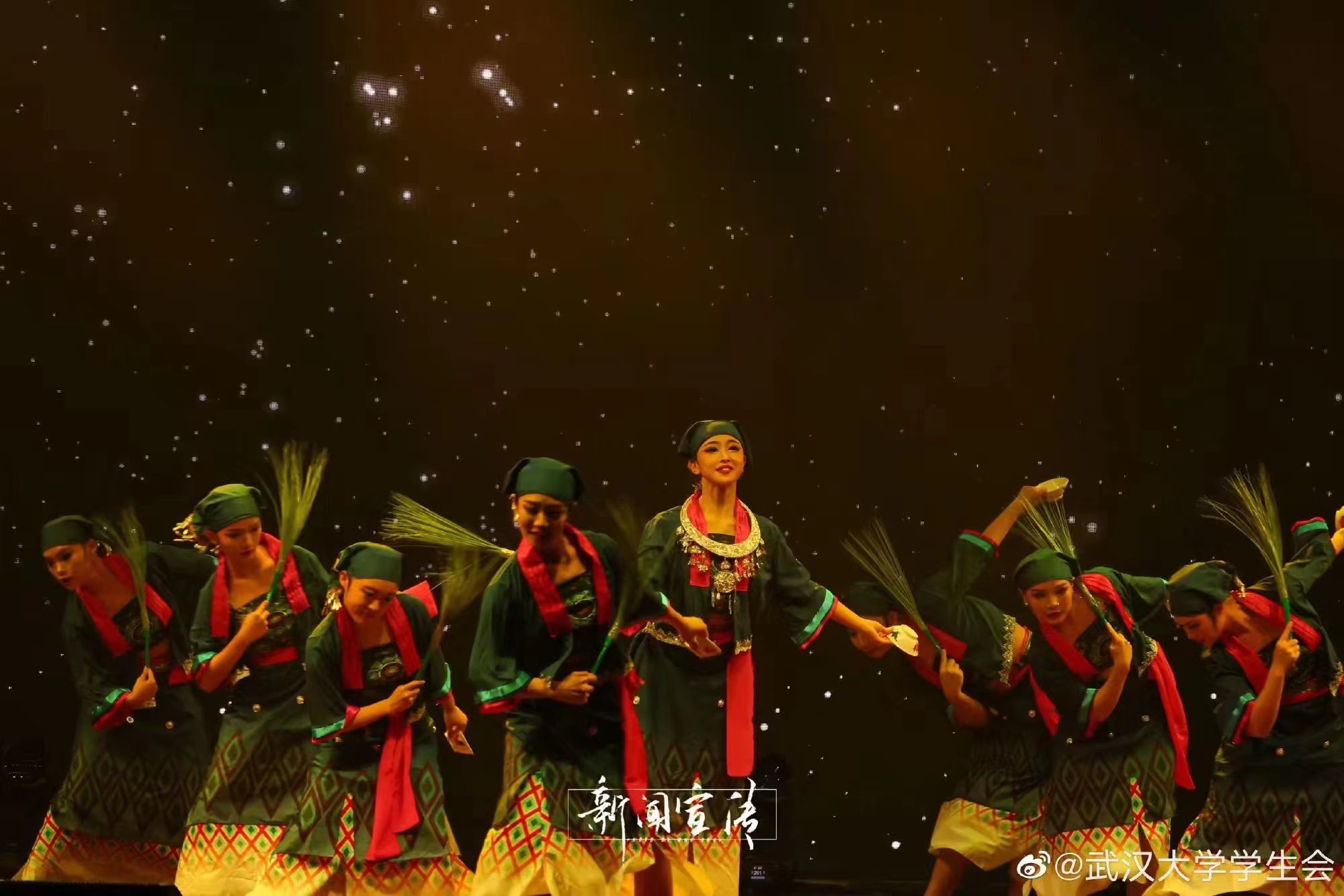 “弦歌一声双袖举”,灯起,同学们随乐声起舞,裙摆与灯光交相辉映,美的别具一格,春种夏养,秋收冬藏,一曲青春与自然地赞歌,生生回响在不息的人世间。