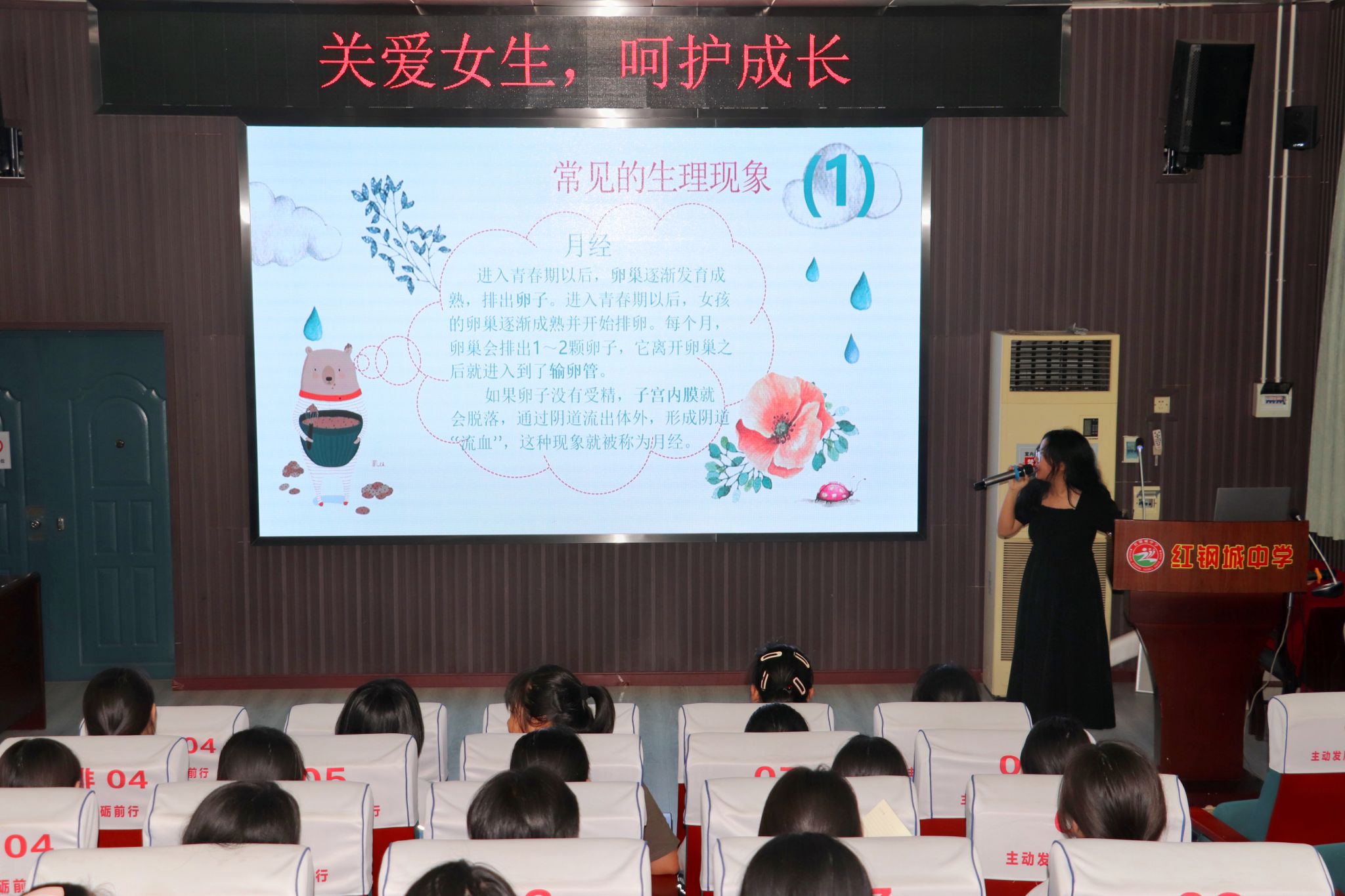 在性教育知识宣讲环节,主讲人聂梦缘同学用温柔而坚定的语气,向同学讲述了青春期生理变化、心理支持知识以及预防性侵害的方法。在生理知识普及过程中主讲人详细介绍了女性生殖系统的结构和功能,让女生们对自己的身体状况有了更深入的了解。同时,她还讲解了月经周期的相关知识,包括月经的形成原理、注意事项以及常见问题的处理方法,帮助女同学们更好地管理自己的身体。在情感与心理支持环节,主讲人探讨了女生在成长过程中可能遇到的情感问题和心理压力,并提供了适当的支持和建议。她鼓励女生与家人、朋友和老师分享自己的感受和困惑,寻求帮助和支持。最后,在自我保护策略部分,主讲人向同学们传达了如何拒绝不合适的身体接触或要求,明确个人边界和价值观等相关内容同时,主讲人还提供了应对性骚扰或性侵犯的应急措施和方法,指导女生们在紧急情况下如何保护自己。现场气氛温馨而热烈,同学们纷纷表示受益匪浅