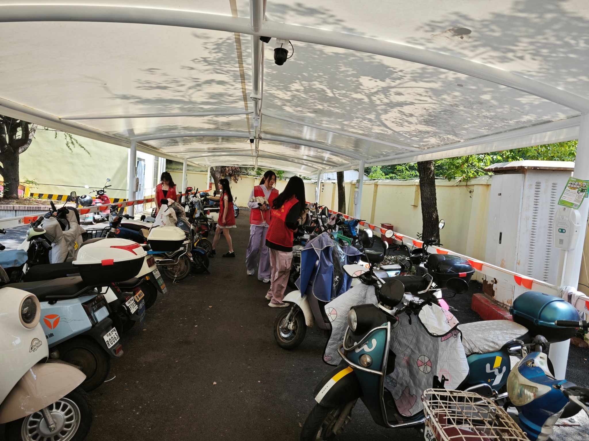 社区安全员向青年者愿者们讲解社区安全设施的基本情况,介绍了消防器材的相关知识,指出夏季是火灾的高发季,且人口稠密的生活社区存在着很大的火灾隐患。在安全员的带领下,志愿者们前往了电瓶车车棚、老式区民楼、地下车库,街边商店等场所,细致地检查了场所内消防器材的健康情况、认真地排查社区内有关电车的安全隐患。志愿者们排查了社区内的电车乱象,对不合规范的业主予以引导和帮助整改,规范充电,有序安置电车。同时,检查了社区内电动汽车充电桩节点,查看充电桩是否有损坏。安全员和志愿者们还前往废弃的拆迁区域,排查易燃易爆车辆与流乞人员,以维护社区安全。