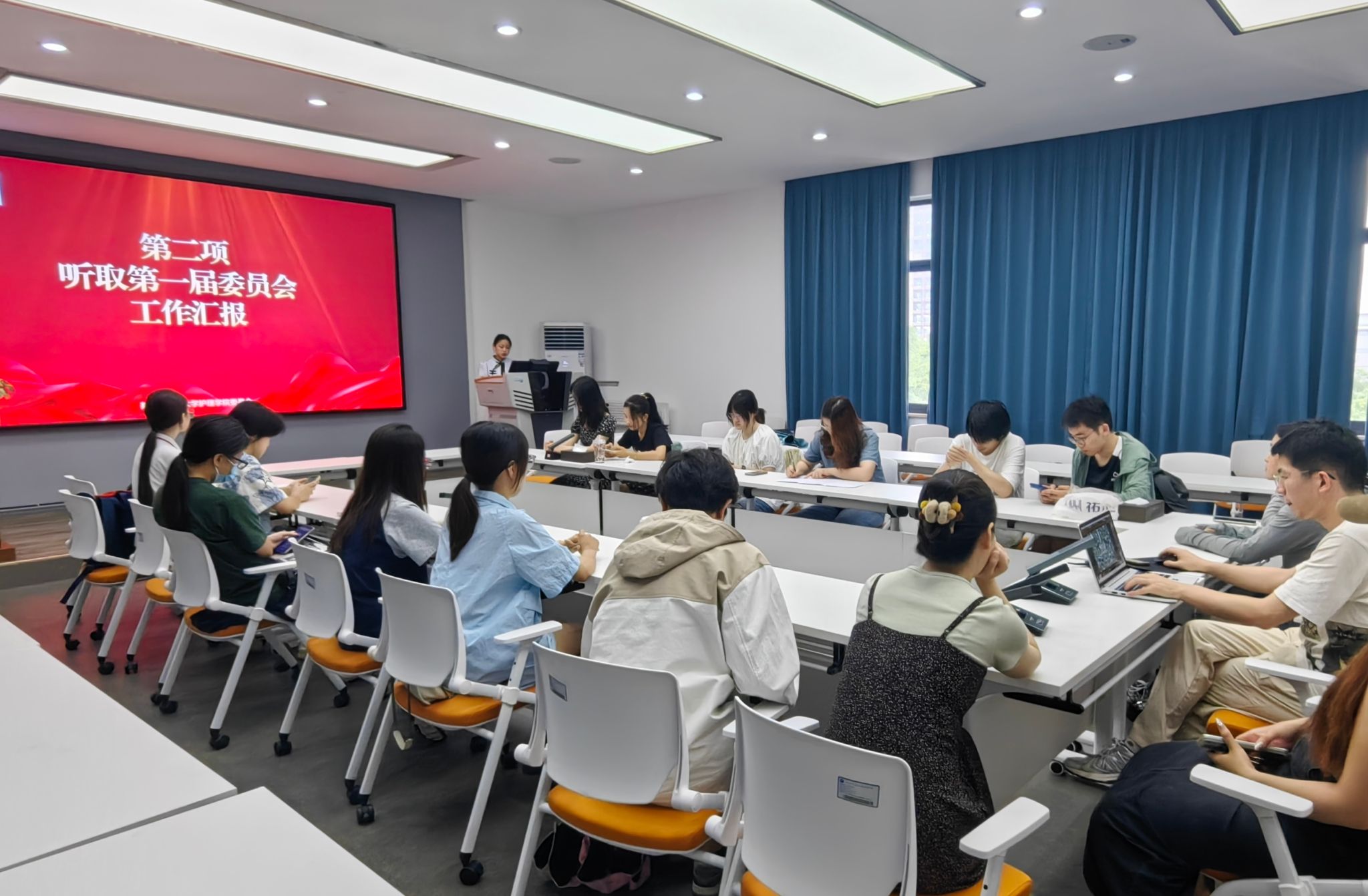 第一届委员会工作报告,《凝聚新力量 奋进新征途——团结带领广大青年在推进中国式现代化中贡献青春力量》。该报告一方面回顾总结了过去一年的工作,从政治建设、组织管理、青年成长三个方面依次展开,充分展示了过去这一学年各项工作取得的优异成绩;另一方面对未来工作提出思考建议,依次从思想建设、活动形式、文化建设三个方面明确了下一学年工作方向和目标。各位代表听取了报告。