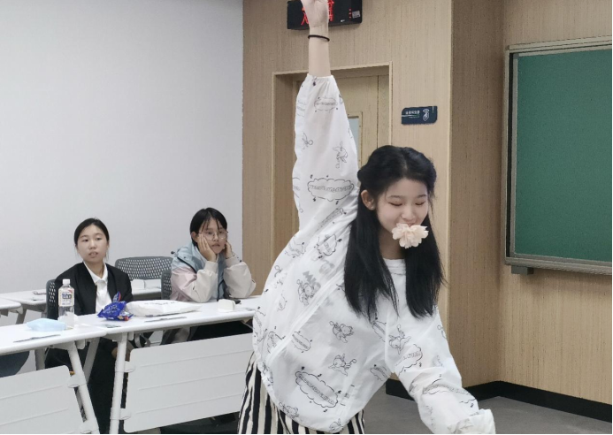 娱乐与放松后,我们接着收看精彩表演。青年志愿者协会的另一个节目是吴佳熹表演的舞蹈簪花引》。轻歌曼舞如梦如幻,用来形容这支舞蹈再适合不过啦!不仅舞姿柔美,更人比花娇。