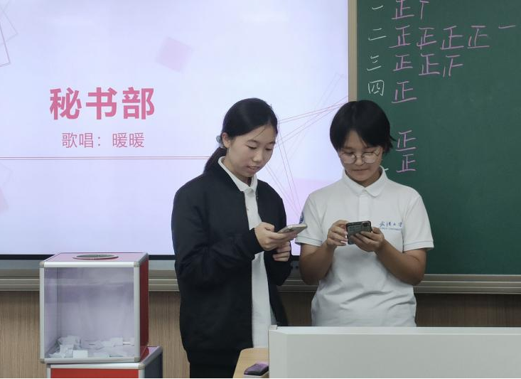 既有舞蹈视觉盛宴,自来歌声洋洋盈耳。在最后一轮的表演中,秘书处曾佳仪和王钰琪带来的一首暖暖,甜美的嗓音,柔和的韵律让我们都沉醉其中。