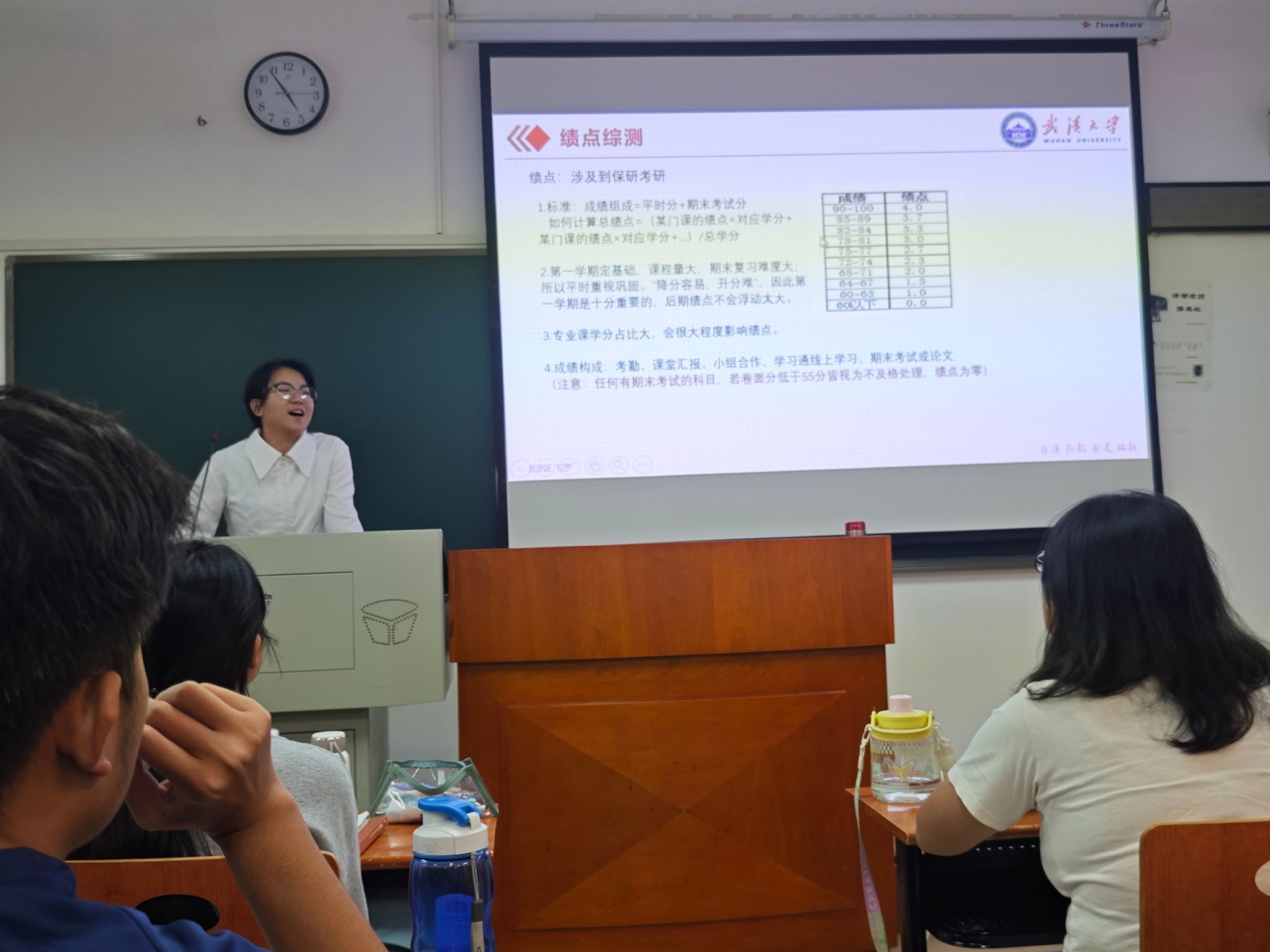 23级刘雪茹学姐则带领同学们共同学习了《抖阴 本科生综合测评细则》以及奖学金、推免方案等相关文件。通过文件内容的学习,同学们更多地了解了如何计算绩点、综测,从而能够尽早的确定发展目标并为之努力。在学习方面,她还向大家分享了自己的学习方法,将自己的学习经验慷慨传授鼓励同学们积极进取,争取更好成绩。