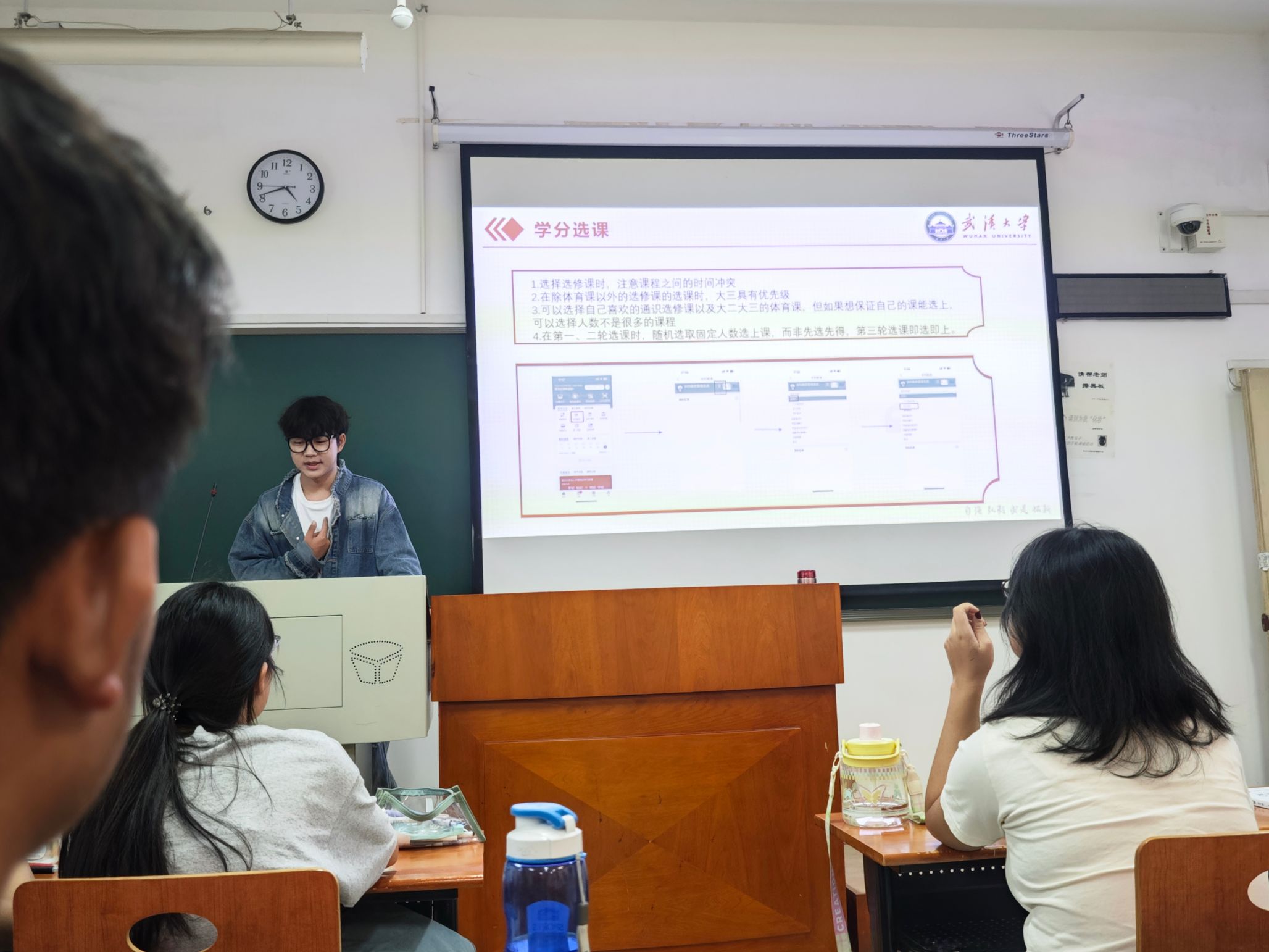 23级邓春林学长向同学们详细介绍了培养方案中学分选课的相关内容。他从选课时间、选课要求、选退课机制、小学期选课、缓考补考重修等方面具体讲述了同学们最关心的选课问题,为刚接触选课机制的大一新生们提供了详细的指导建议。