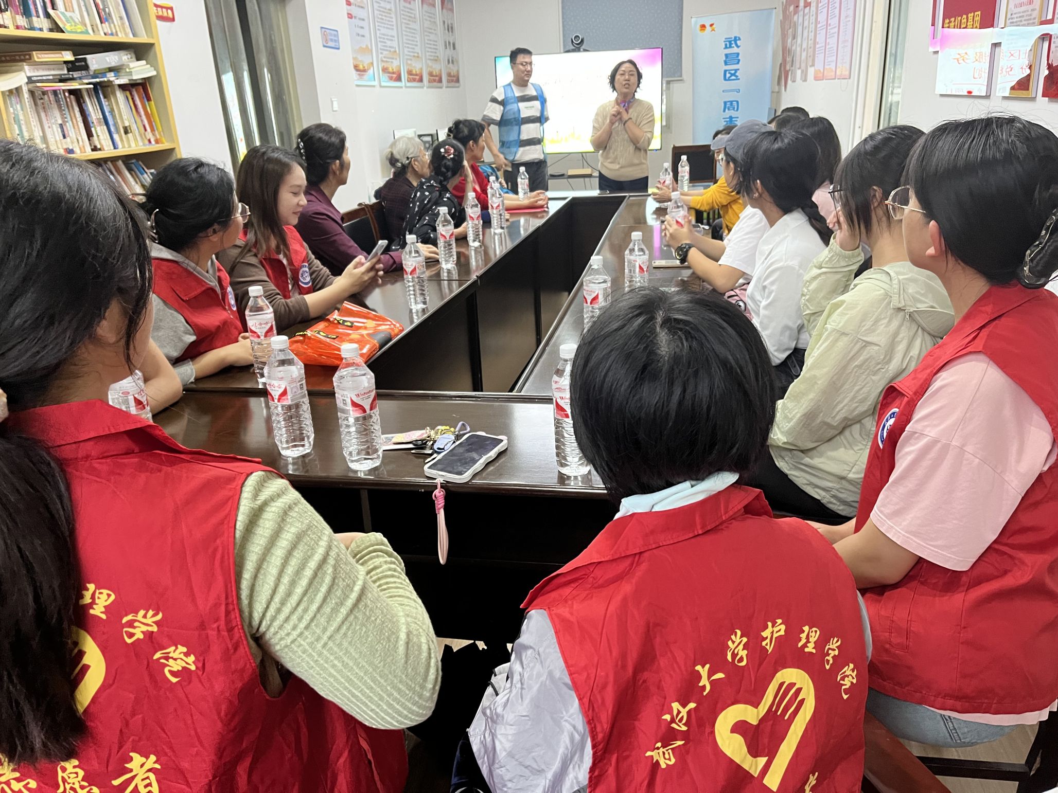 下午2点30,水生所社区负责人王老师从项目执行背景目标、项目创新实践以及项目发展前景三方面为学生志愿者和老年互助小组的老年人们讲解社区“共融社区·助老服务积分兑换计划”项目相关内容。