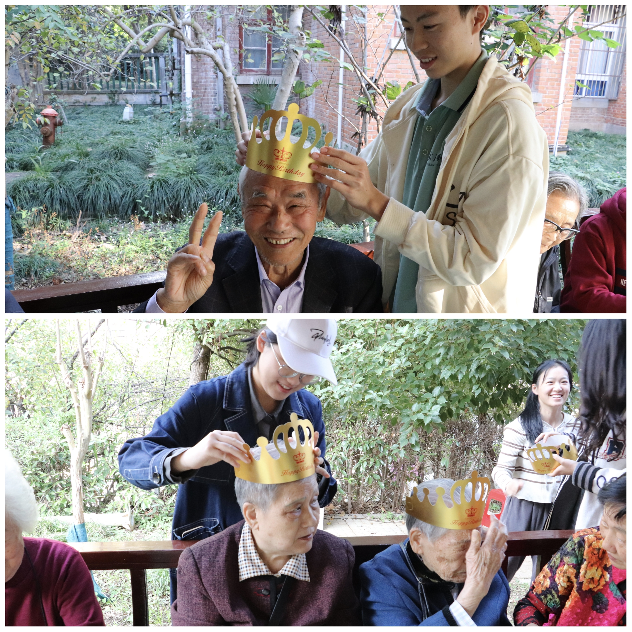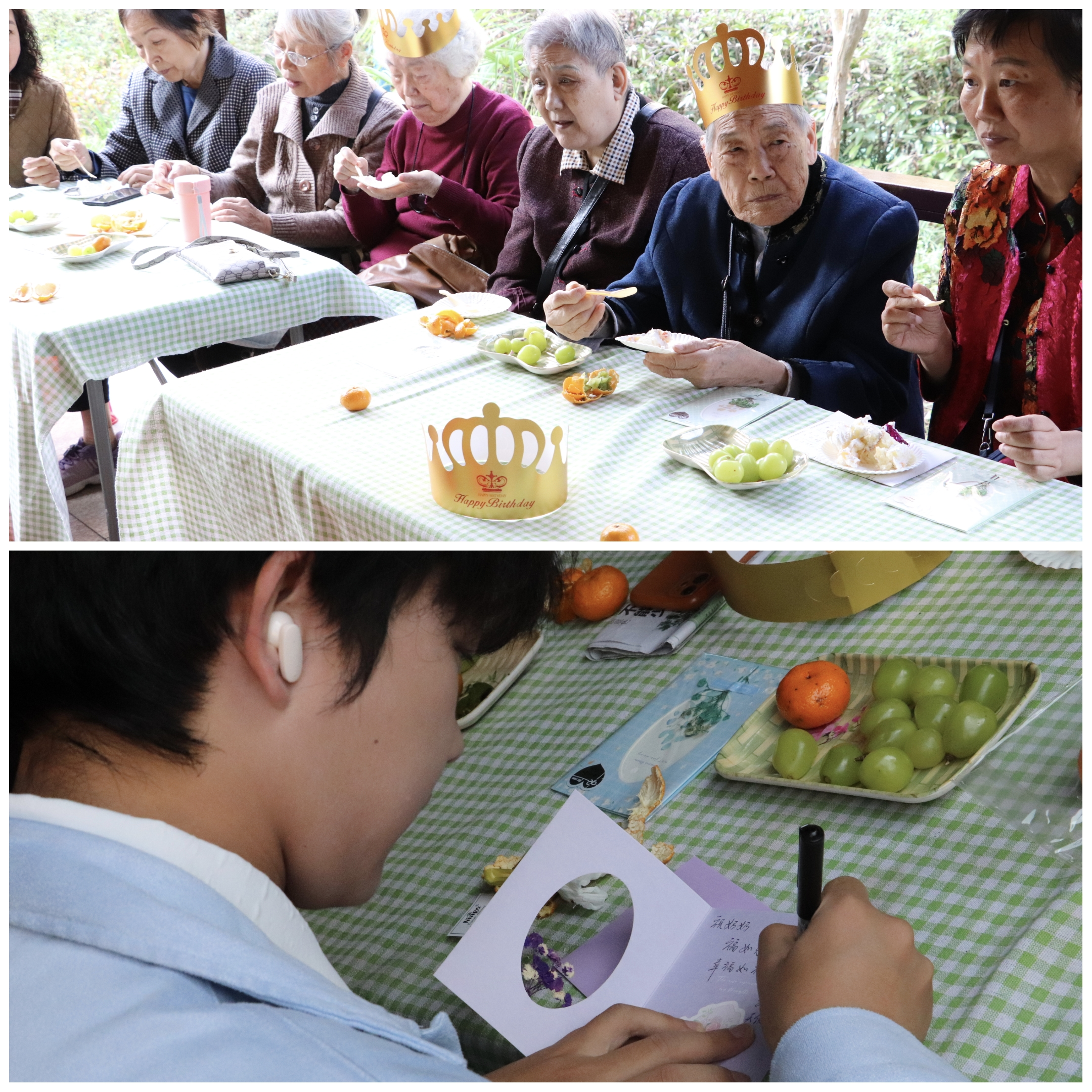 最后,服务队队员为在场所有老人戴上生日帽,送上生日蛋糕,写下祝福贺卡,并集体唱响生日歌,祝福这群“八零”“九零”的爷爷奶奶们福如东海,寿比南山。