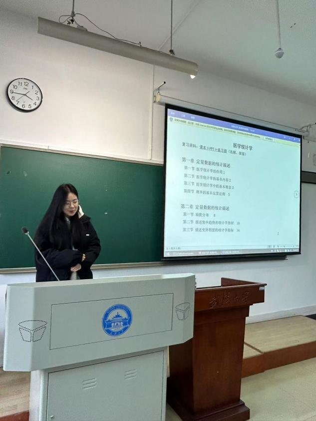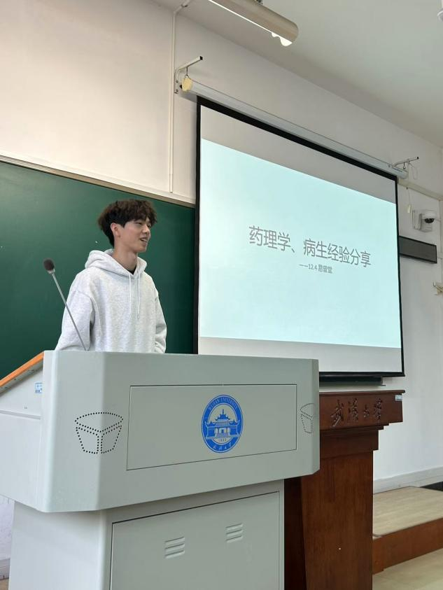 2022级本科生学长学姐陈婧景小桐易曾堂则在学生会学习部的邀请下来到2023级本科班的课堂分享复习备考经验。陈婧通过提供医学统计学复习资料和构建整体框架指导同学们系统地复习详细解读了考试题型,并画出了复习重点。景小桐针对病理学知识点的孤立性和主观题的频繁出现,提出了静心、专心、细心的复习原则,并建议同学们通过题目筛选重点知识,进行有效整理和标注,以提高复习的全面性和准确性。对于药理学和病理生理学的复习,易曾堂从心理建设、时间规划和复习技巧三个维度讲起,分享了学科特点和个人使用的复习资料,为同学们提供了全面的复习策略。