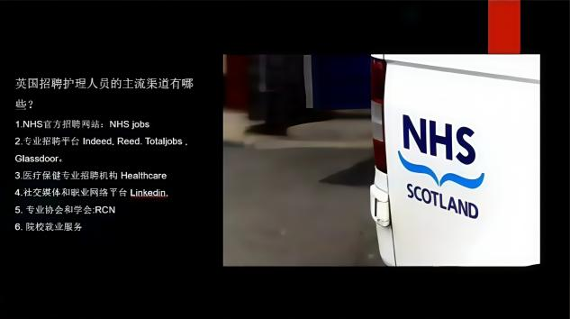 在职业发展专题环节,她详细梳理了英国护理高等教育与职业发展现状,特别说明了护理岗位薪资结构体系。孙敏强调,英国当前面临护理人力资源短缺问题,尤其在老年护理等领域存在显著人才需求,就业前景广阔。针对中国护理本科生升学需求,孙敏系统说明了英国护理研究生项目的目标院校选择、课程设置特点、申请核心条件及材料准备规范,并就签证申请流程与留学费用政策进行专业指导。她特别指出,中国学生可通过直接申请英国护理本科或完成NMC注册护士认证两条路径执业,同时提醒需重点关注英语能力证明等语言门槛要求。