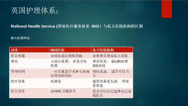 在职业体系解析环节,孙敏以个人发展经历为切入点,对比分析英国国家医疗服务体系与私立医疗机构在运营模式、服务特点等方面的差异,阐释护理人员在基础医疗服务、预防保健管理等环节的关键作用。通过行业趋势分析,指出护理角色多元化、技术融合创新及人才队伍建设等发展方向。