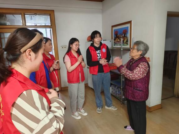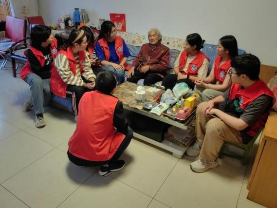 健康宣教活动结束后,碧苑花园社区团支部副书记易巍带领部分志愿者上门拜访了几位独居老人。在敲开第一扇门时,熊友琴奶奶以热情的笑容迎接了所有志愿者。熊奶奶的腿脚不便,在交谈过程中也向志愿者诉说了她腿骨诊治的经历。从她的口中,志愿者们了解到当前独居老人接受医疗服务的一些生活阻碍,如行动不便、医疗服务、使用电子设备困难等,志愿者也表示今后将结合老人的具体的、实际的需求开展相应的志愿服务。