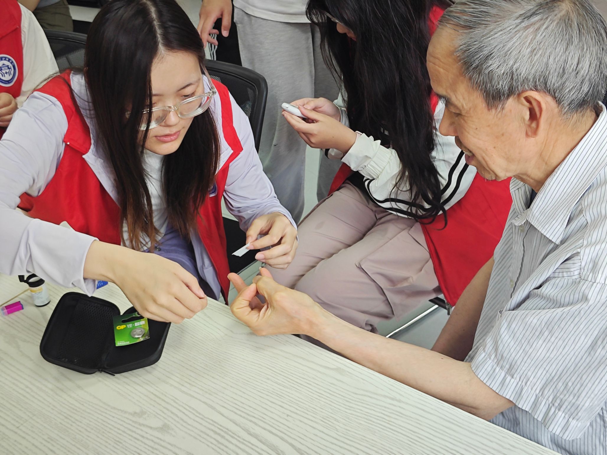 为现场老人免费测血糖