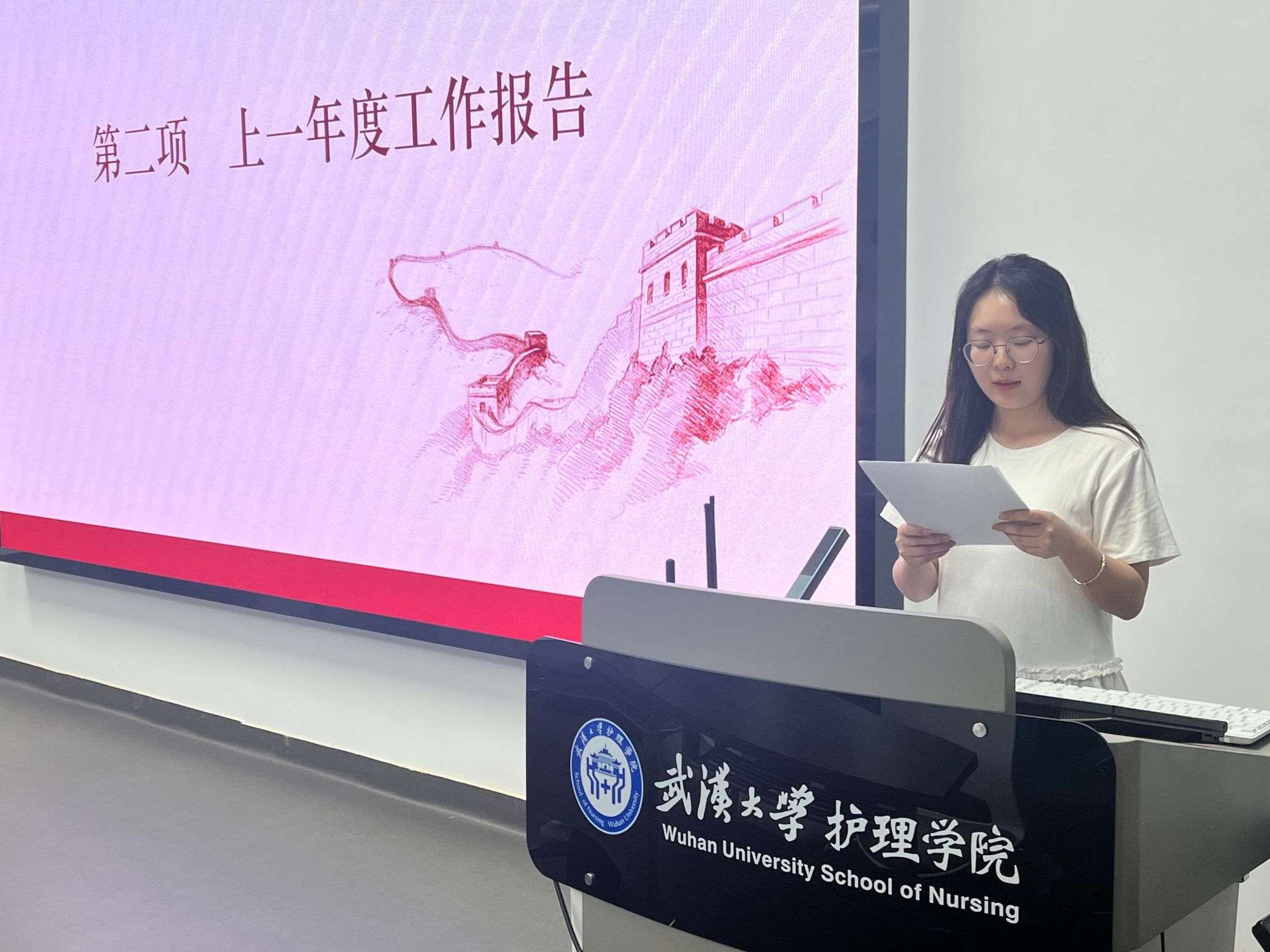 会议在庄严的团歌声中开幕。首先,院学生团委副书记袁子凌同学做共青团抖阴 第一届委员会上一年度工作报告《锚定“支点”坐标 培育时代新人——引领广大青年团员在服务健康中国战略中贡献护理力量》。该报告一方面回顾总结了过去一年抖阴 团委的工作,从团学基层组织建设、党团思想理论学习、校园服务引领、志愿科践内涵拓展四个方面依次展开,充分展示了过去这一年各项工作取得的优异成绩;另一方面对工作中存在的问题与不足进行了分析并提出思考建议,依次从思想建设、团学组织改革、特色品牌建设三个方面明确了工作方向和目标。
