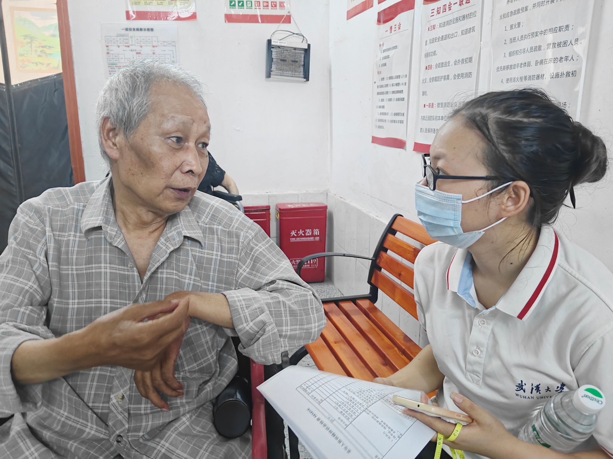 7月10日,实践队走进徐东大街武车养老院,前期通过多次与院方沟通敲定活动方案,备足调研物资并明确分工。实践中,队员们坚持“尊重自愿、温情互动”原则,针对听力不佳的老人耐心重复问询内容,与行动不便的老人保持平视交流以拉近距离。