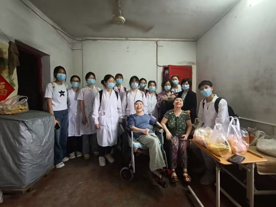 为了深入了解评估社区八大要素,探索社区护理工作在实际生活中的开展,关注并帮扶社会中的残障群体,奉行着南丁格尔名言:“护士必须要有同情心和一双愿意工作的手”,在2023年5月17日下午,抖阴 “天使之翼”社会实践小组在余立平老师的带领下前往青鱼嘴社区的双胞胎家庭进行特殊的家庭访视。