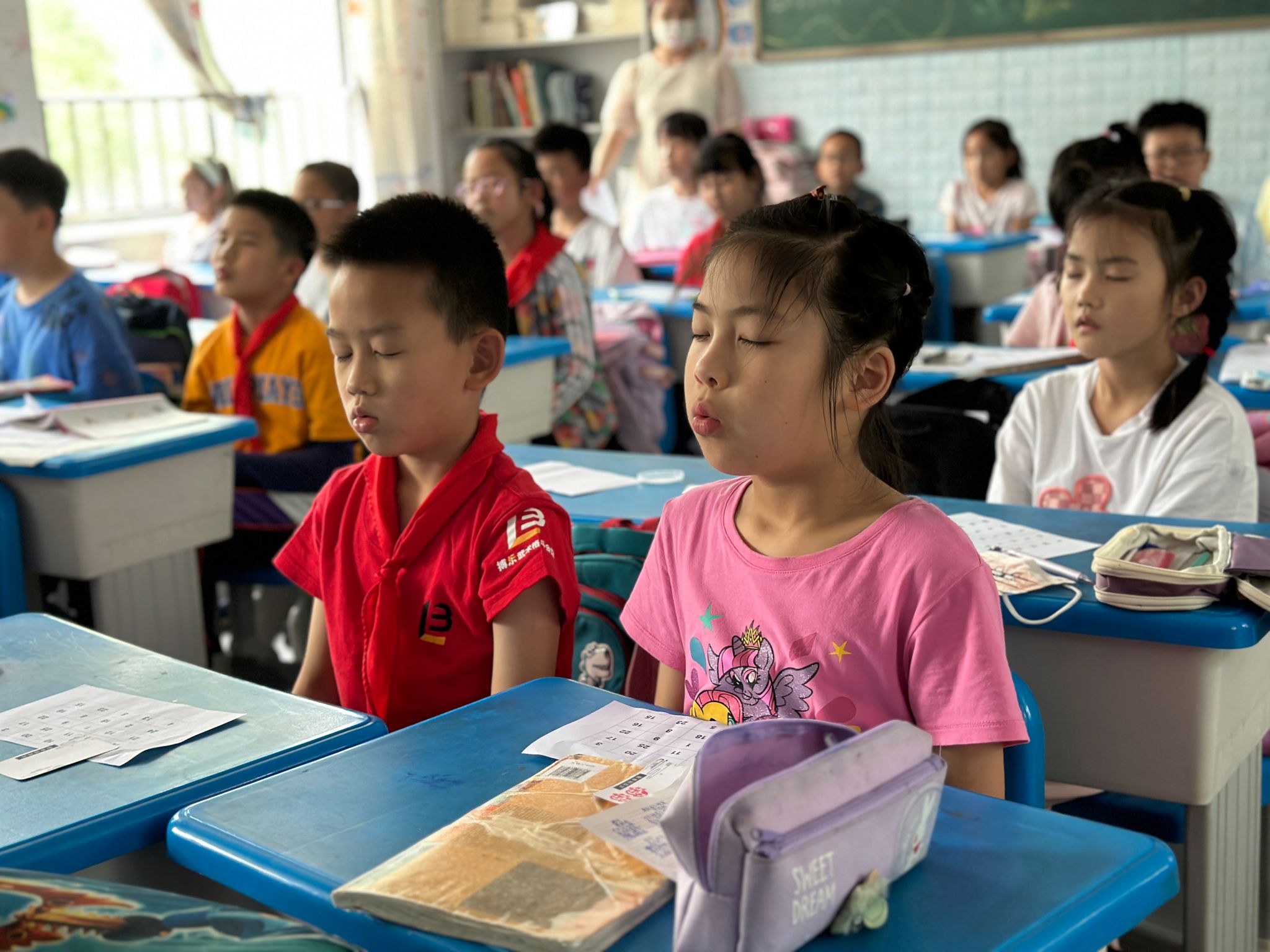 同学们在黄蕾卿同学的引导下进行呼吸冥想
