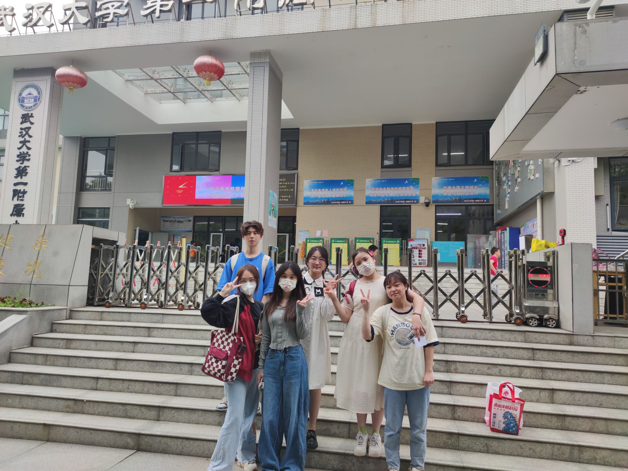 实践队的同学们在一附小门口合影