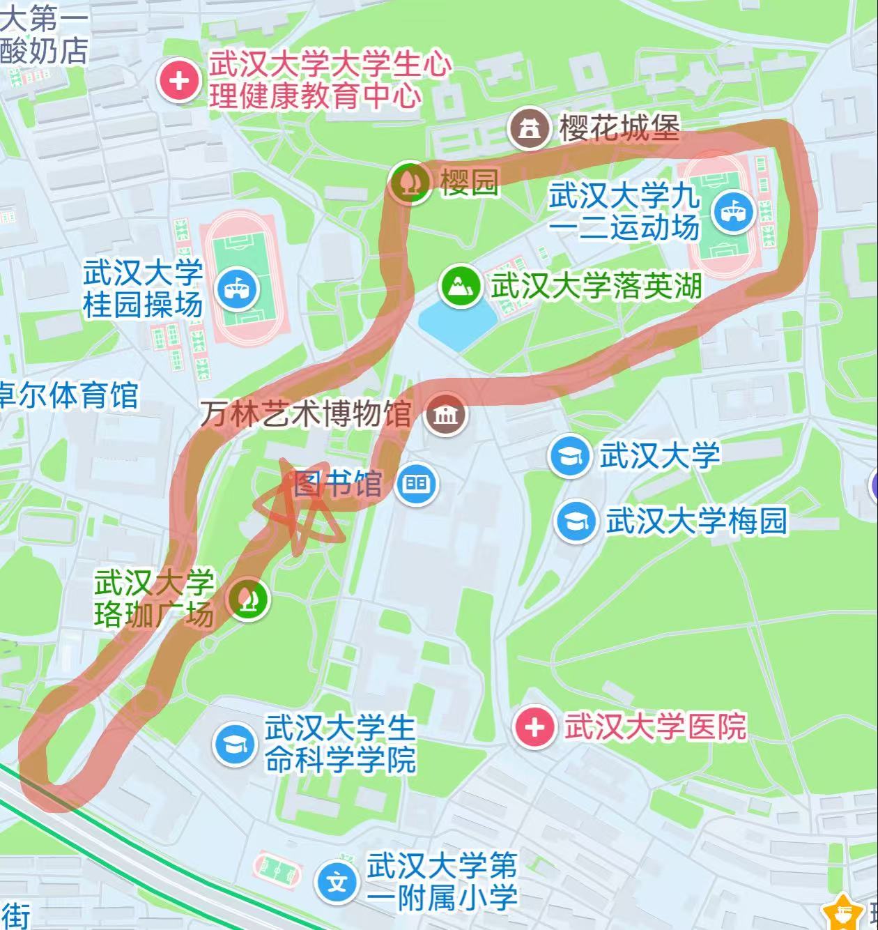 • 精选特色线路,串联校园地标与人文记忆,路线经过行政楼、樱花大道、武大牌坊等校园地标
