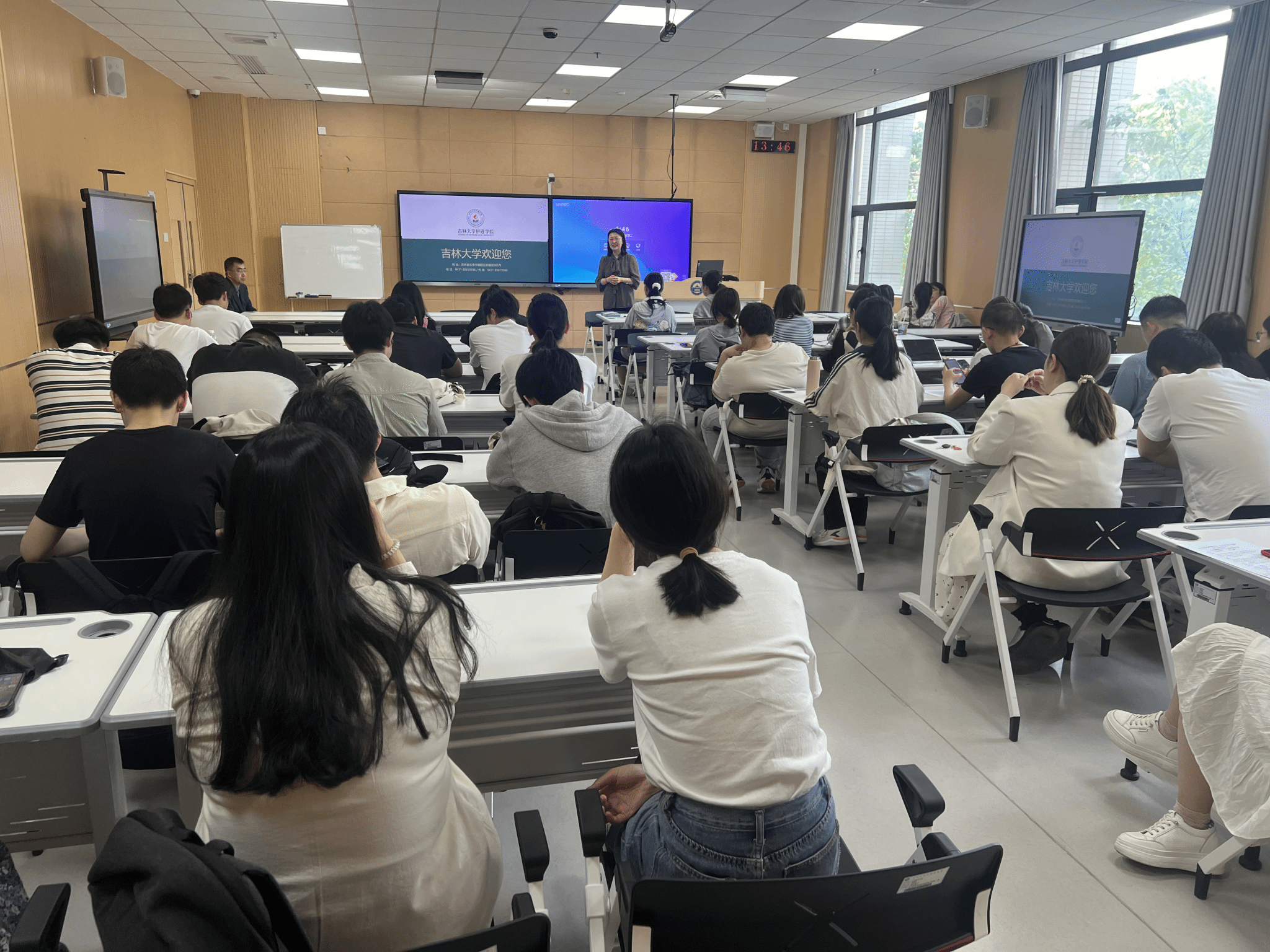 李昆教授围绕吉林大学护理学院历史沿革、基本情况、师资现状和研究生教育培养方向进行介绍。她就教学理念、培养方式、特色优势以及丰富的教学资源详细阐述了吉林大学抖阴