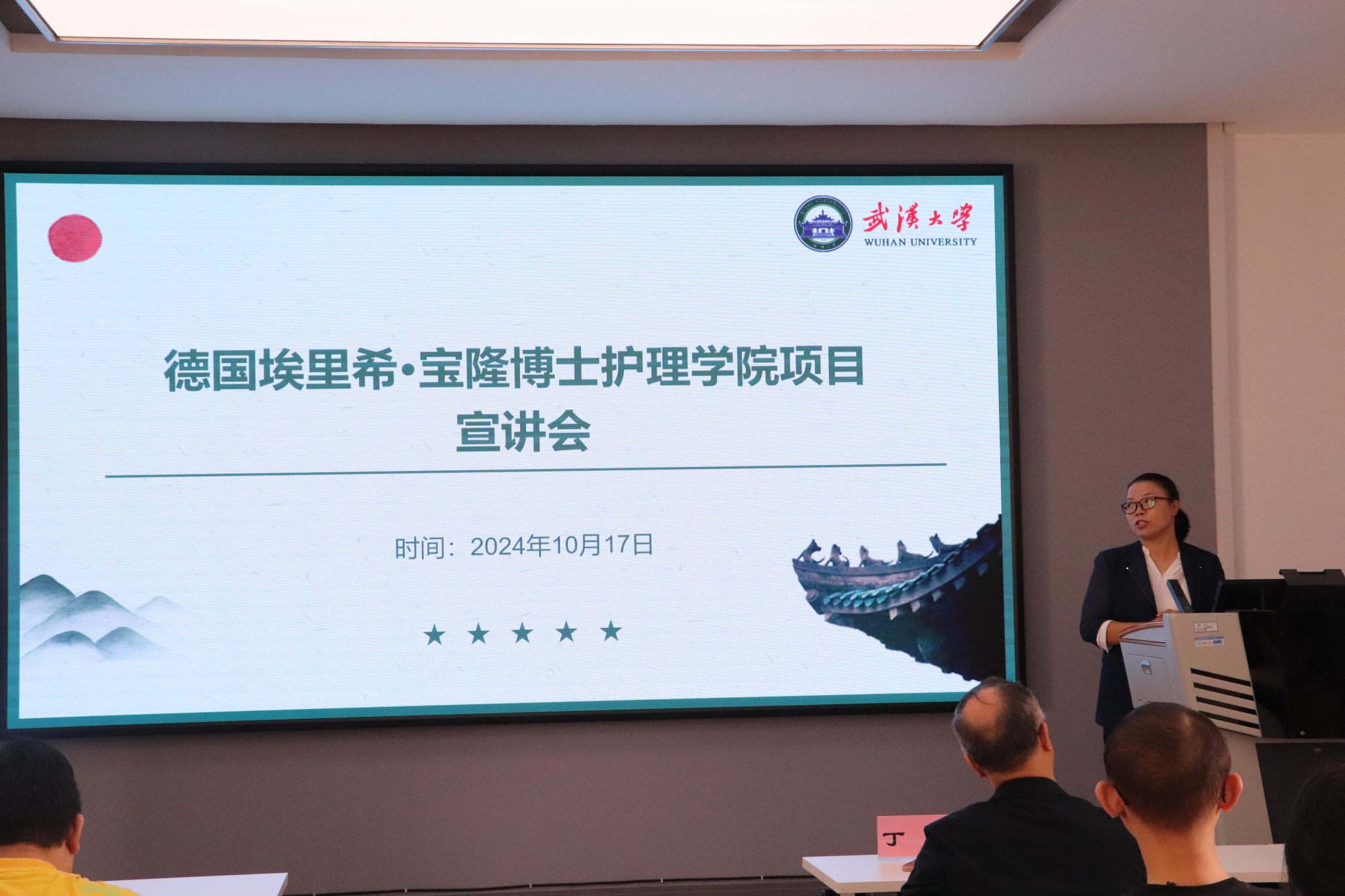 在会议上,丁涛老师详细介绍了德国护理专业教育体系,并向学生们讲解了德国护理专业实习生毕业后的发展机会。随后,他阐述了德国宝隆护理项目的申请流程,包括该学院的教学模式、护理学习内容、德国医疗机构的运作体系和工作环境等。通过此次宣讲,同学们对德国宝隆抖阴