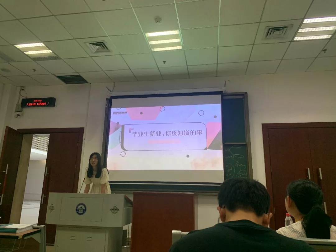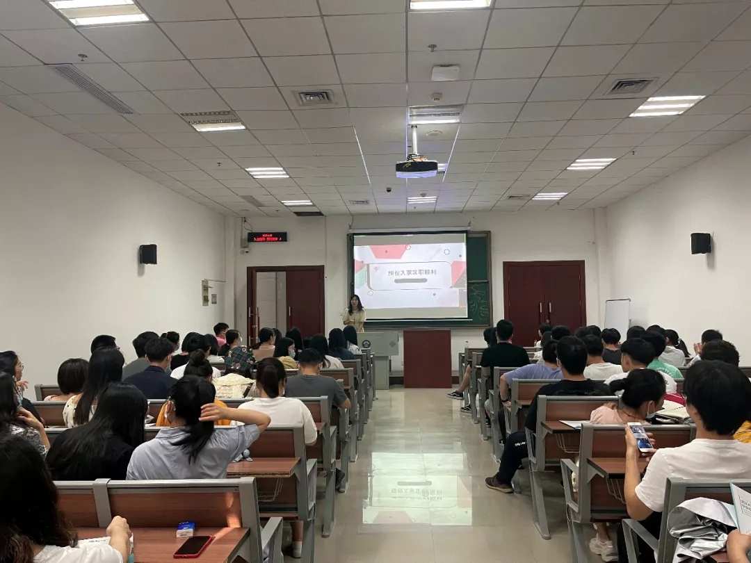 医学部8号楼8001教室举办2022届毕业研究生就业指导大会,学院副院长高功敏、研究生辅导员王洪璐、兼职辅导员叶秋红以及全体2022届毕业研究生参加会议。会议由王洪璐老师主持。