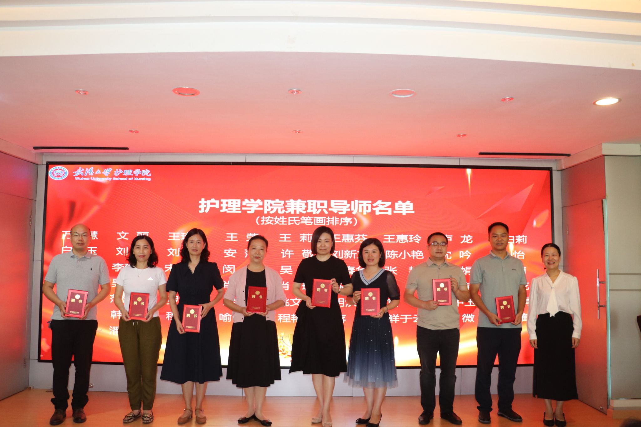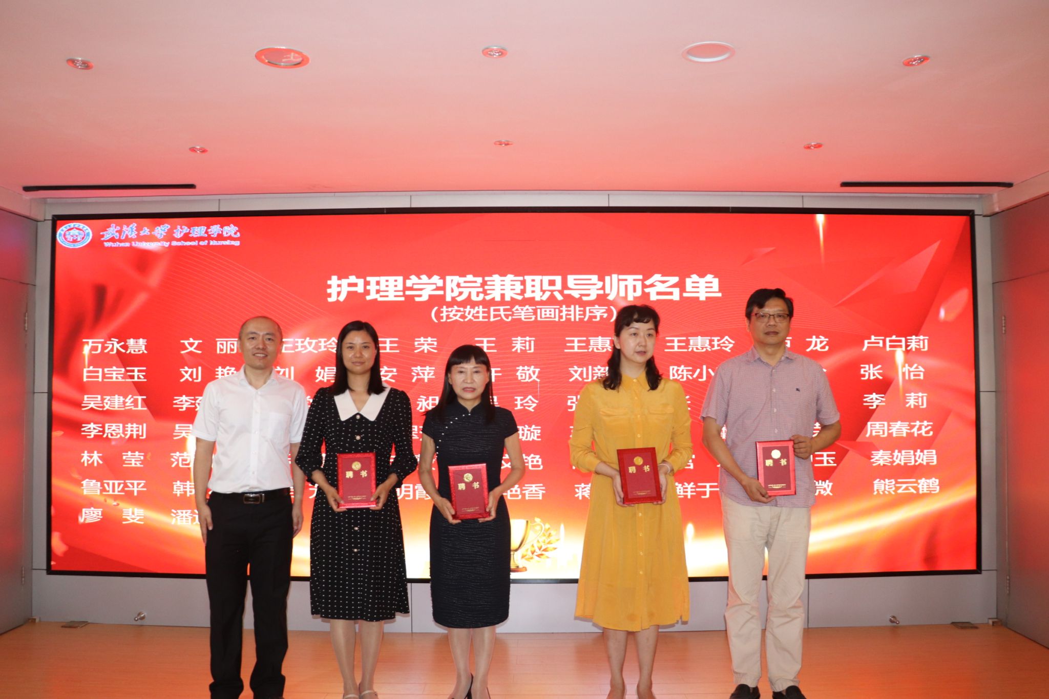 双师型教师和兼职导师颁发聘书,并表彰了一批优秀教师,包括优秀学士学位论文指导教师、优秀临床带教教师、优秀研究生指导教师、博士申报优秀贡献教师、全国青年护理教师临床技能竞赛优秀指导教师和教学成果突出贡献教师。