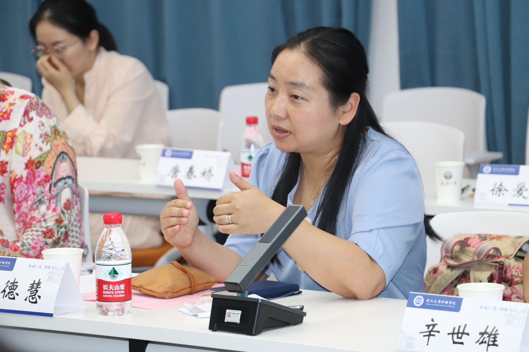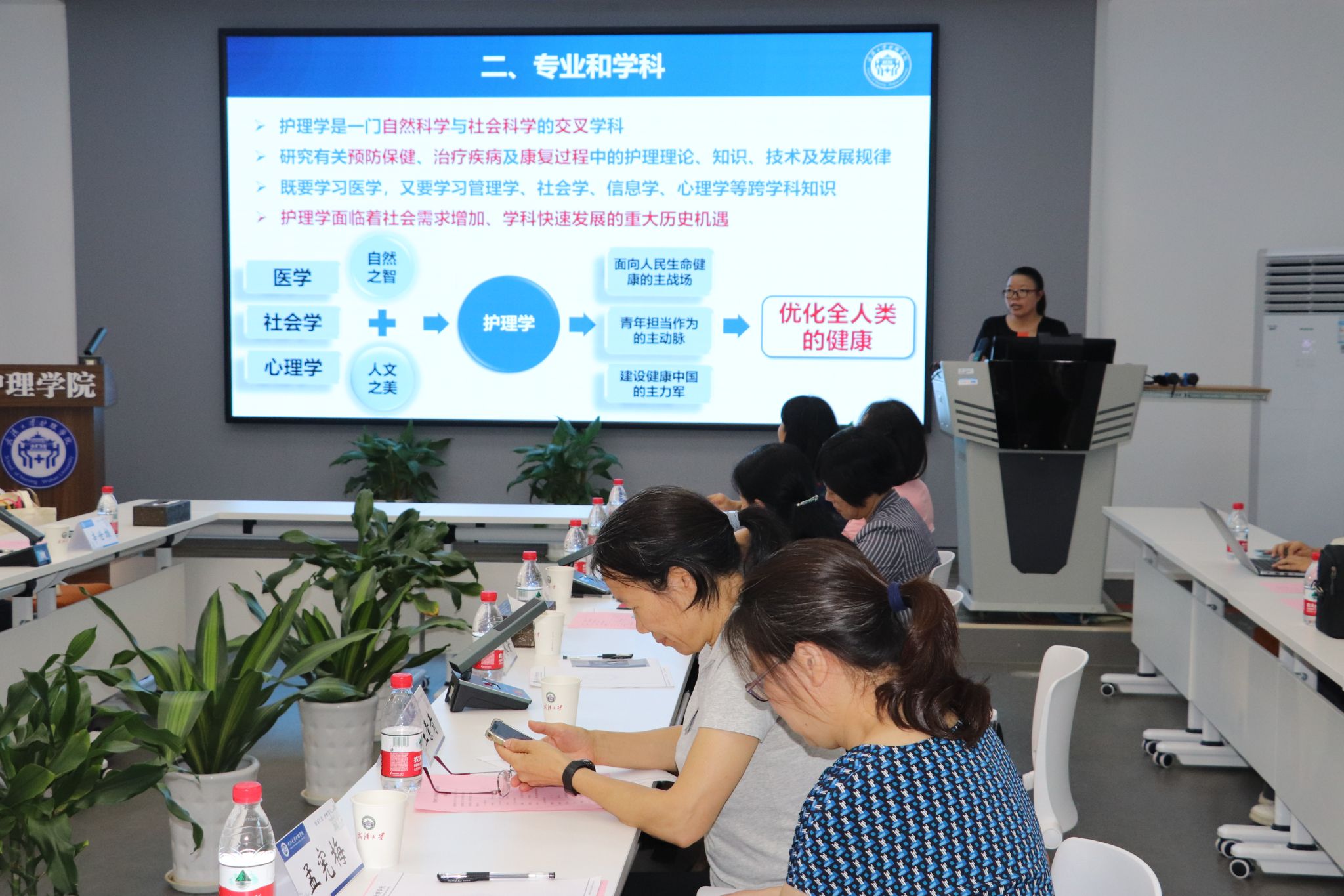 院长周芙玲、副院长杨冰香、儿童专委会常委/实验教学中心副主任孟宪梅、人文与社区护理教研室主任余立平、临床护理教研室主任欧阳艳琼、基础护理教研室主任张青、实验教学主任王素青以及人文与社区教研室教师代表参加了此次会议,会议由抖阴
