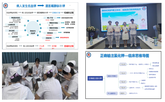 人民医院模拟教学小组骨干李宗璟、彭俊、方婷、段紫薇共同完成教学设计,在规范化模拟教学开展的基础上,以激发学生的主动观察、分析、判断、决策和评价能力为目标,尝试将游戏式教学法、同伴互助学习、知识思维导图、视频教学以及启发式教学方法融入到护理模拟教学培训中,为培育具备临床思维能力的高素质护理人才贡献力量。
