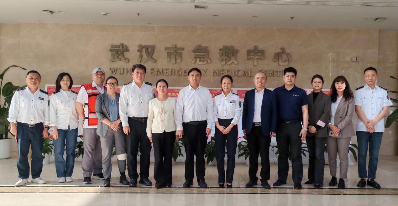 领导班子一行8人赴武汉市急救中心开展学习交流活动。武汉市急救中心党委书记、主任赵俊、副主任张文胜及相关业务部门负责人出席活动。
