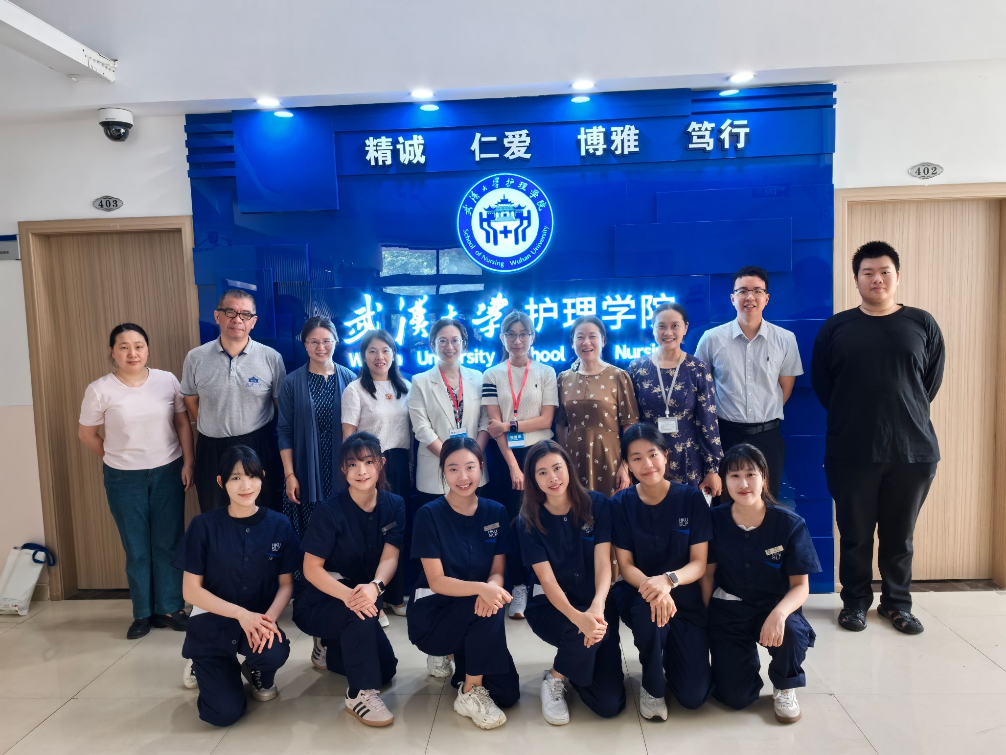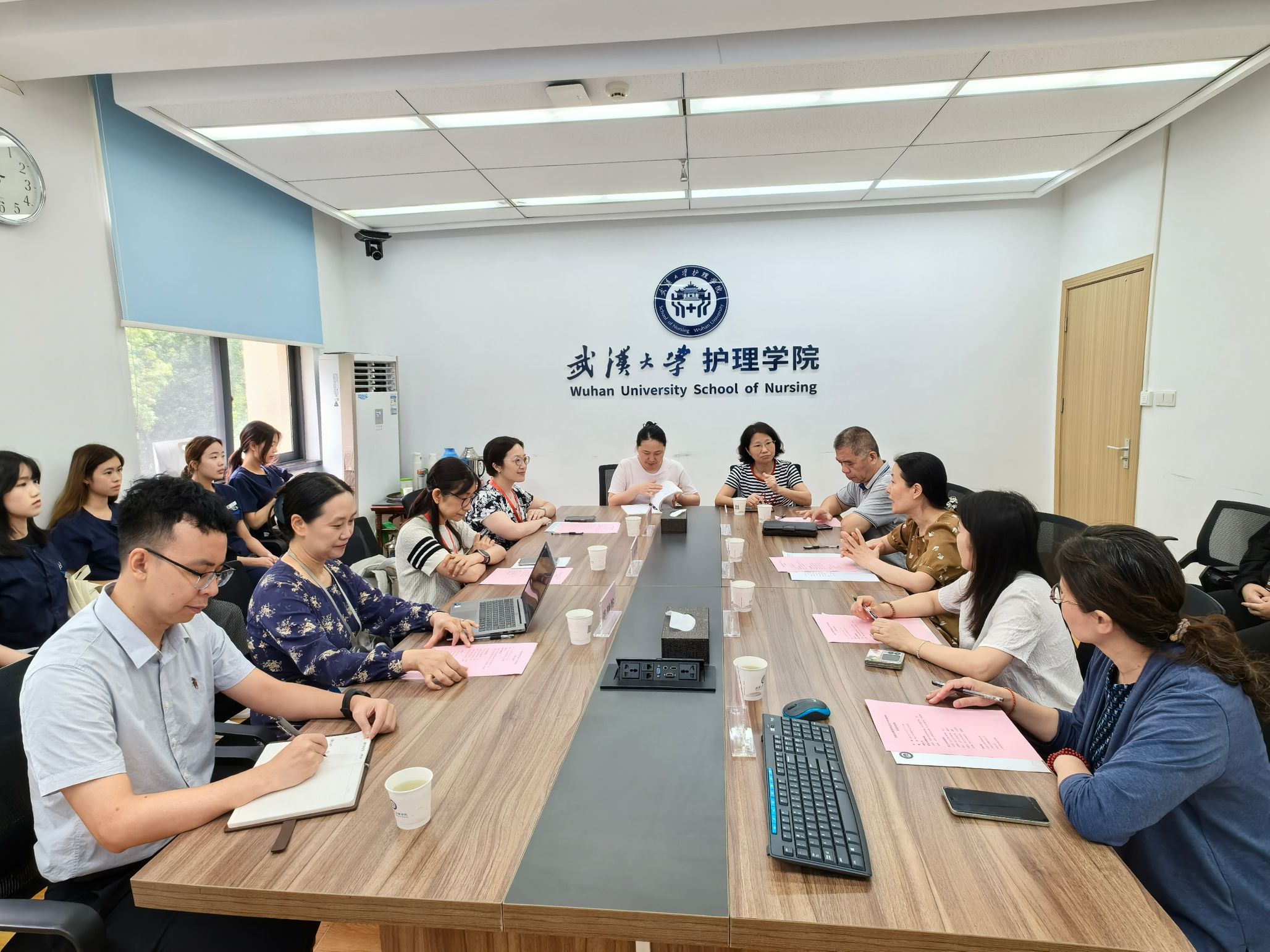 院长周芙玲、副院长刘燕群、智慧护理工程研究中心主任钱俊、中南医院国际医学教育与交流办公室主任范静怡、及相关教师参加座谈交流。