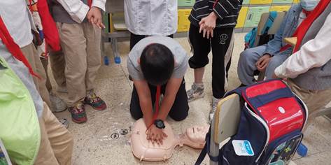 2020级全体学生在余立平、孟宪梅、喻惠丹老师的带领下来到湖北省武昌实验小学(东湖国际校区),并在国旗下讲话,介绍了心肺复苏进校园的重要性。并在随后的第一节课分成六组进班教学,两周共计完成了三、四两个年级550人的培训。通过这次活动,让孩子们掌握了急救知识、急救技能,根植了“见义智为”的意识,这不仅是一节通识课,更是一节鲜活的思政课。课程的知识目标、能力目标和价值目标完全体现。