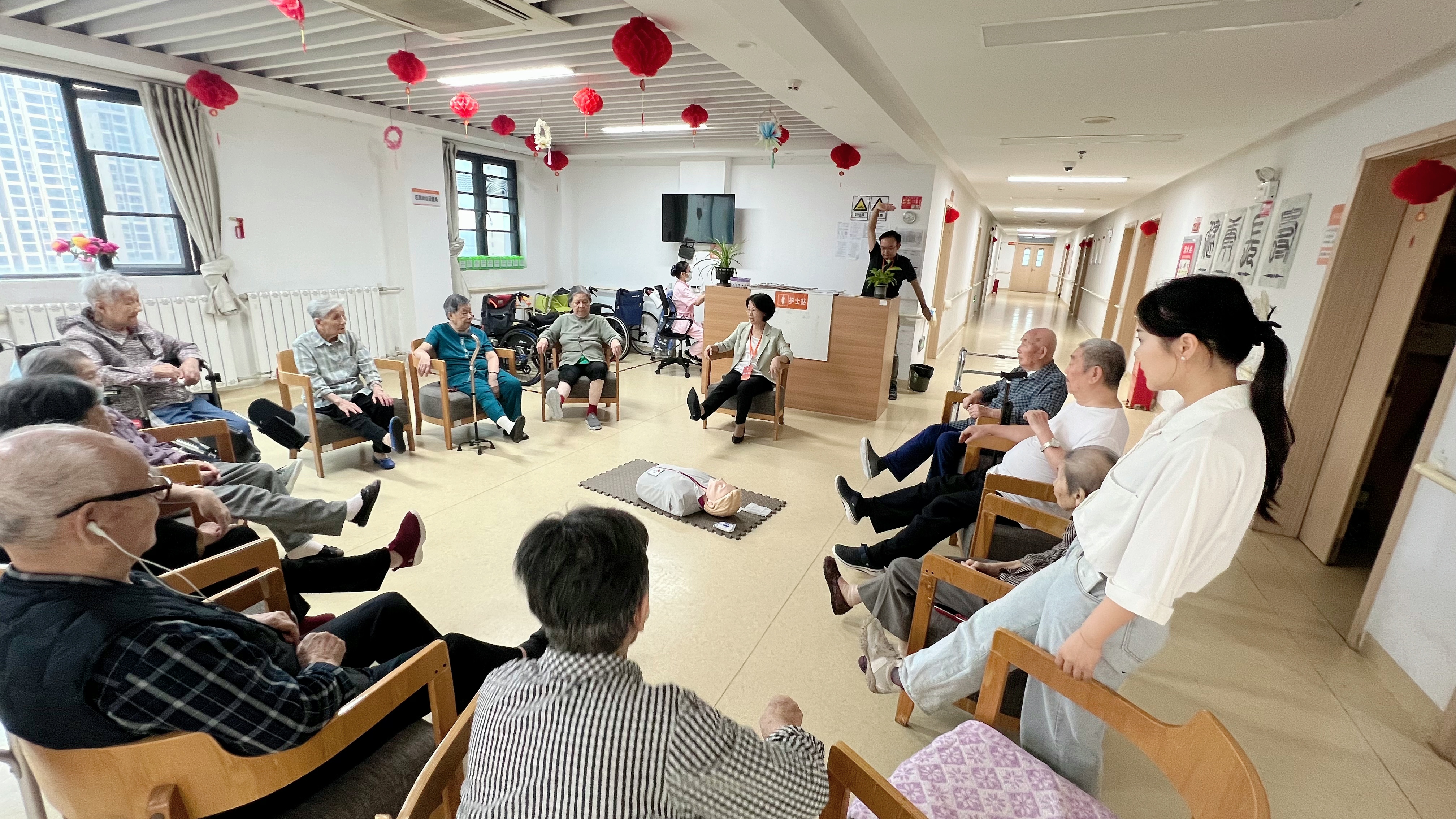仪式结束后,张青团队还走进福利院长者们活动室,亲自带领老人们学习“手指操”和下肢抗阻训练。长者们热情参与,活力四射,纷纷表示乐于加入后续活动。