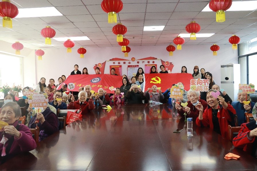 教职工党支部联合学生第二党支部,赴武昌区社会福利院开展“重阳敬老践党心,护理服务暖夕阳”志愿服务活动。