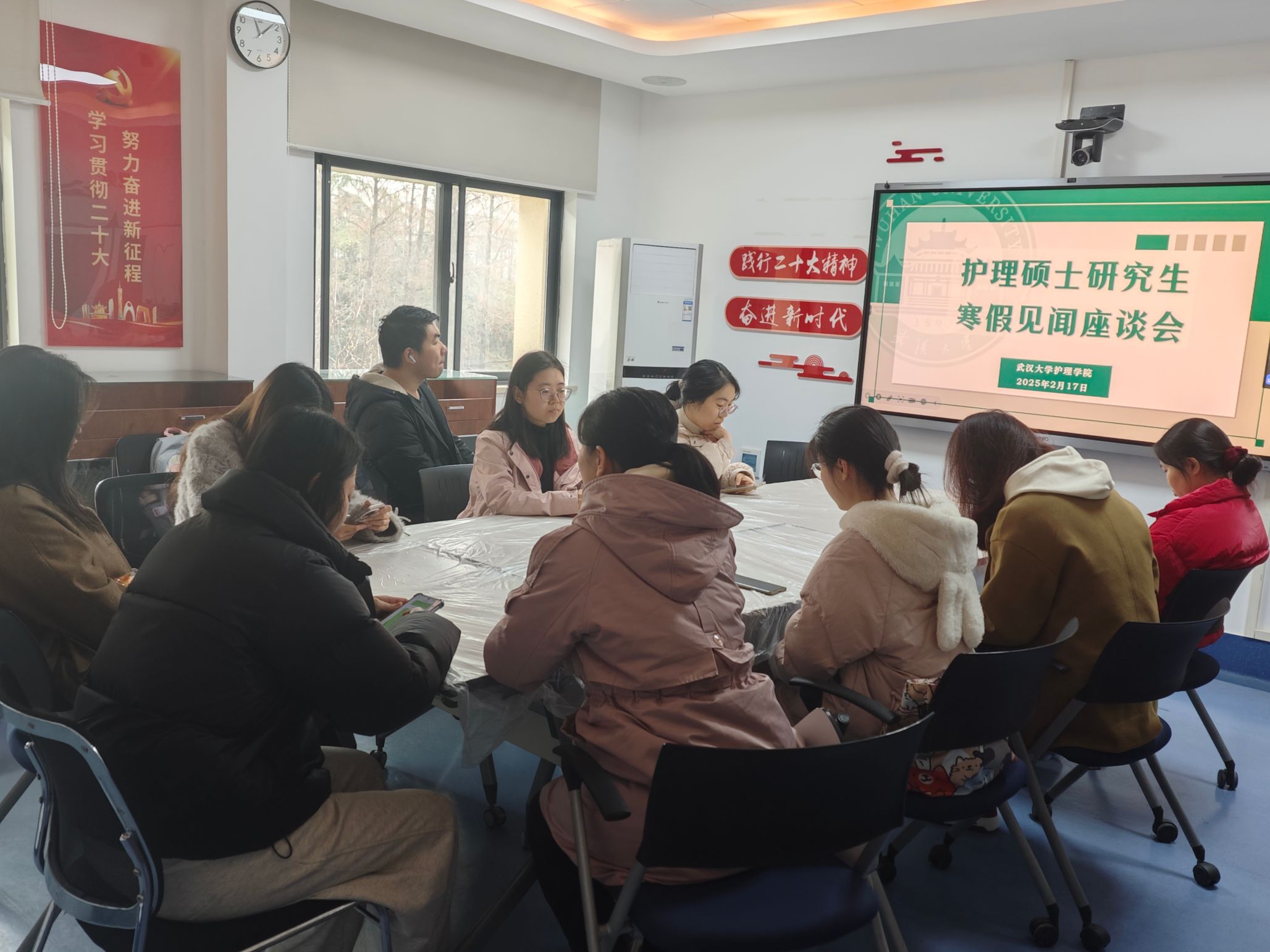 研究生寒假见闻座谈会在2307教室顺利召开。会议由兼职辅导员黄蒨主持,来自各个年级的研究生代表参加了此次座谈会。座谈会上,同学们围绕寒假期间的所见所闻、所思所想进行了深入交流,内容涵盖护理创新、毕业课题筹备、假期生活、文化感悟以及求职备考经历等多个方面。同学们结合自身经历,从不同角度畅谈寒假期间的收获与感悟,展现了抖阴